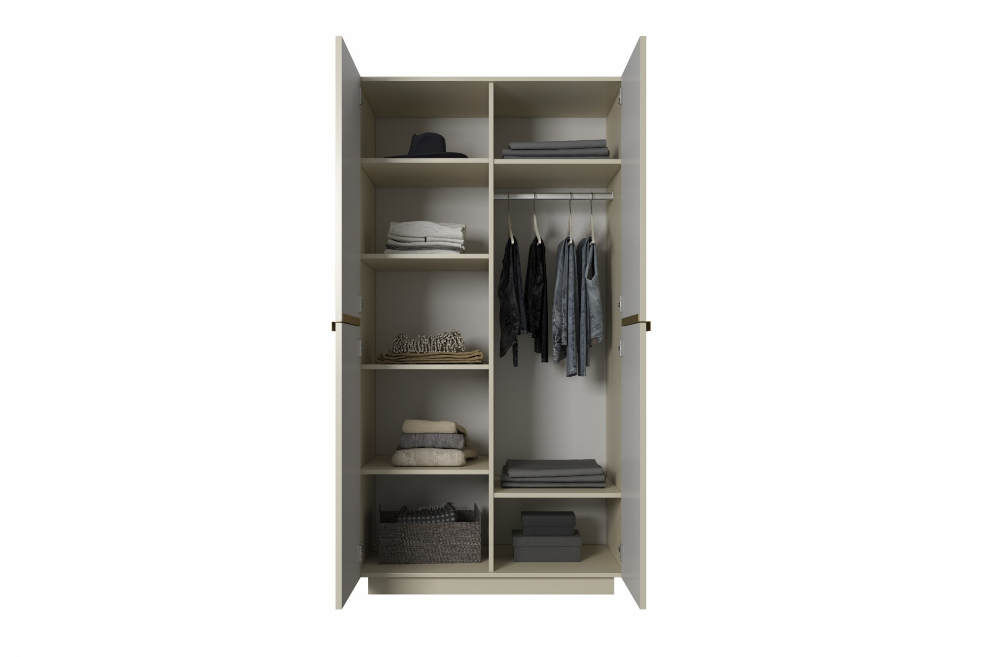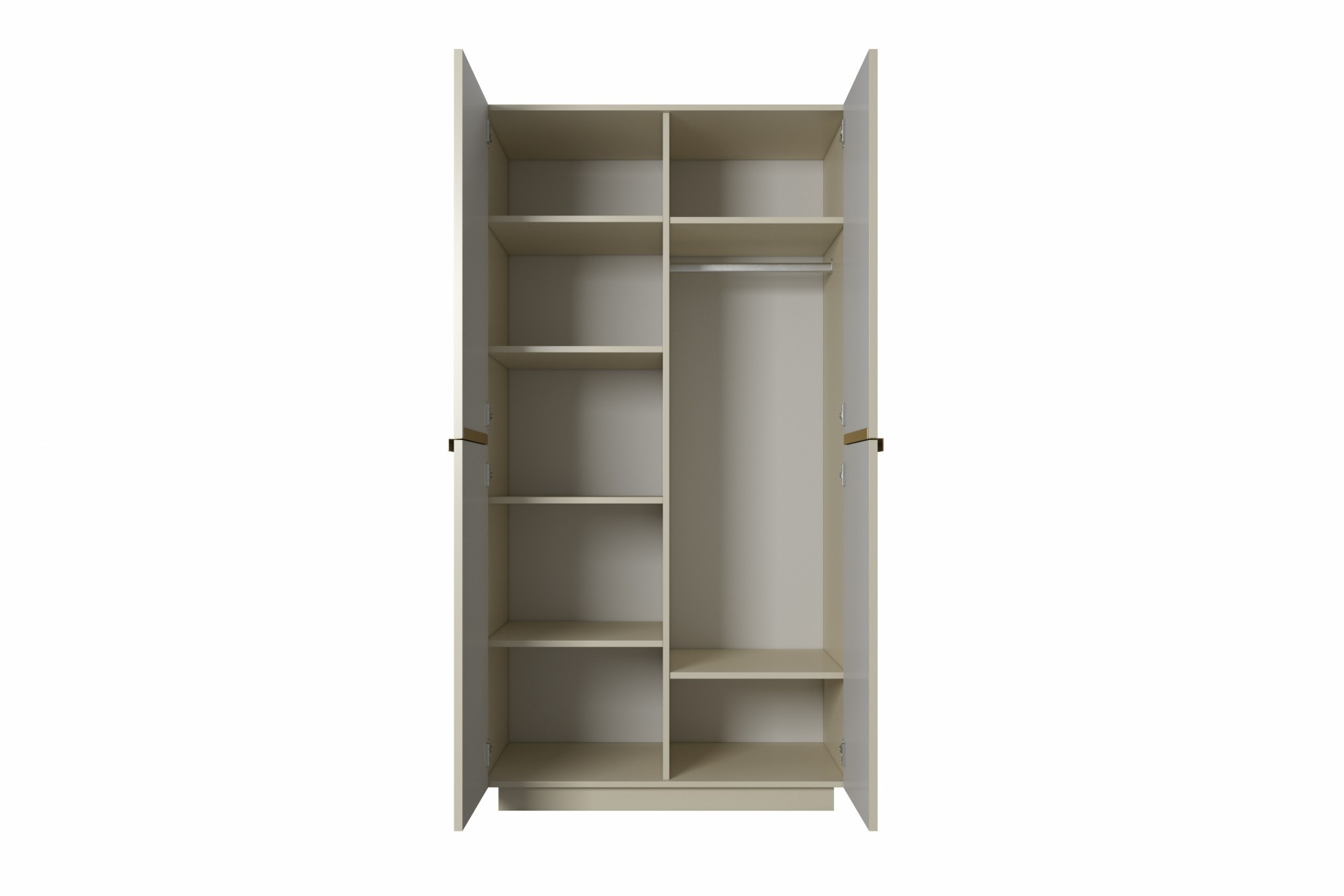 Dwudrzwiowa szafa Nicole z ryflowanym frontem i metalowymi uchwytami 100 cm - kaszmir / złote uchwyty, Szerokość: 100, Wysokość: 207, Głębokość: 62, Wysokość nóżek: , Głębokość blatu: , Montaż: