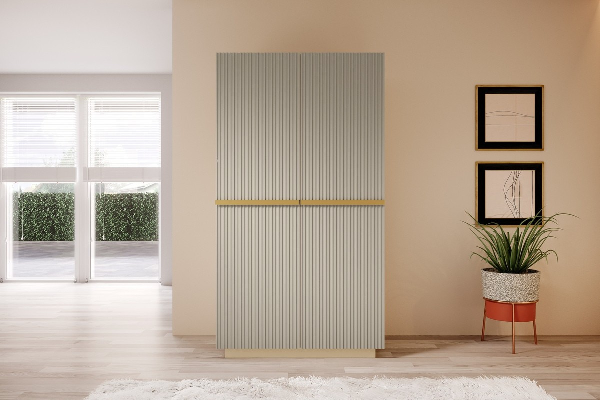 Dwudrzwiowa szafa Nicole z ryflowanym frontem i metalowymi uchwytami 100 cm - kaszmir / złote uchwyty