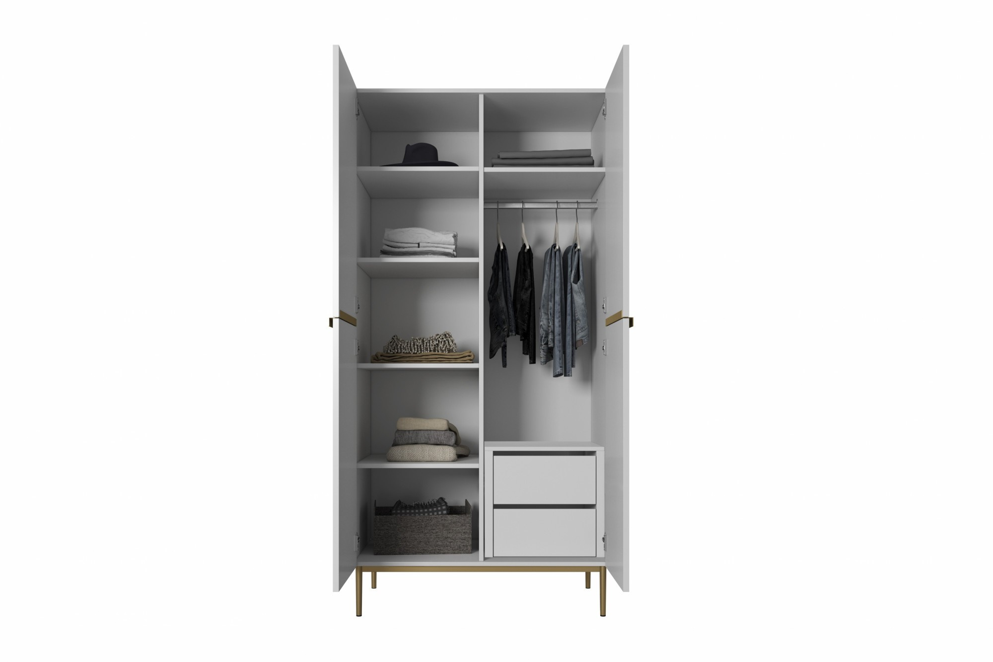 Dwudrzwiowa szafa Nicole z ukrytymi szufladami i metalowymi nogami 100 cm - biały mat / złote nóżki