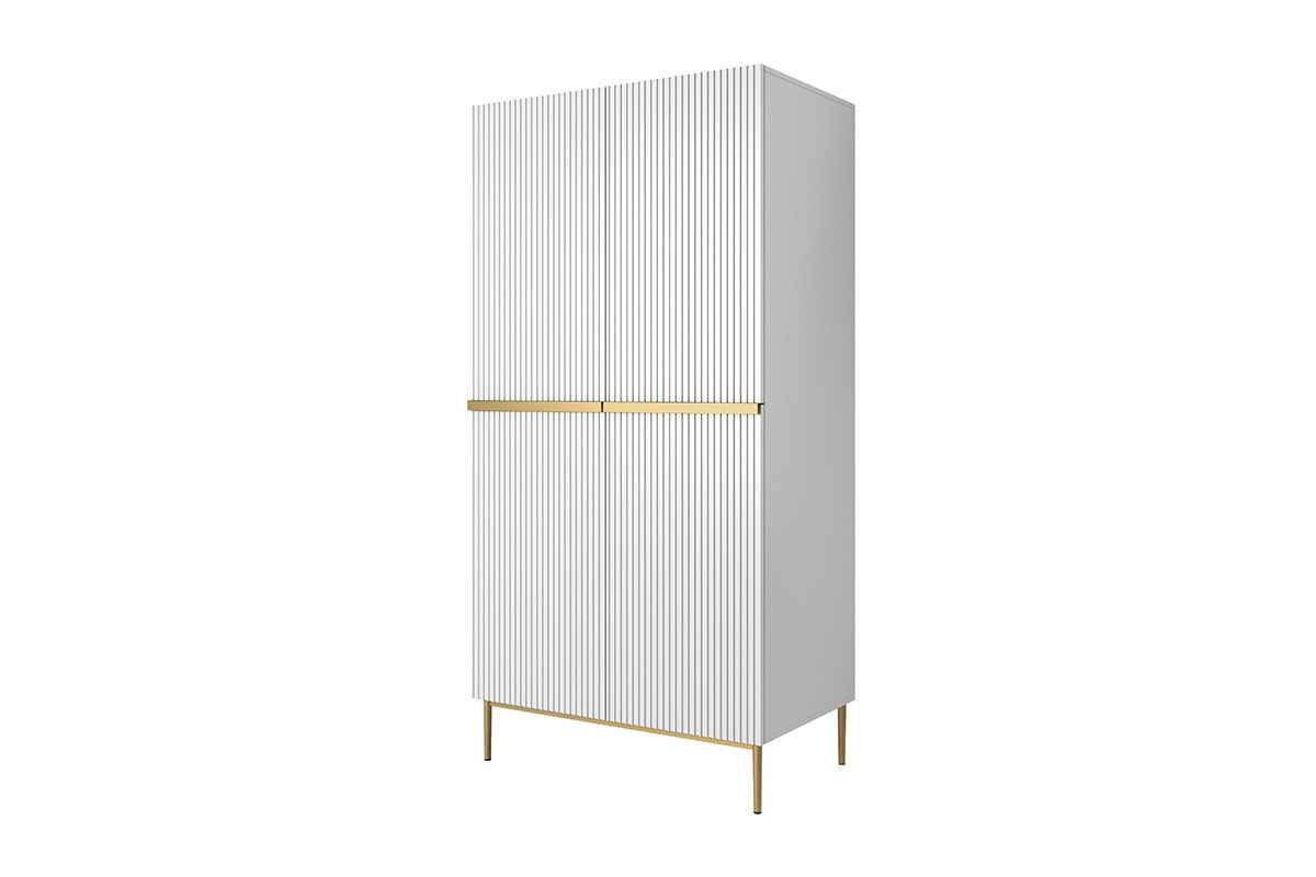 Dwudrzwiowa szafa Nicole z ukrytymi szufladami i metalowymi nogami 100 cm - biały mat / złote nóżki, Szerokość: 100, Wysokość: 220, Głębokość: 62, Wysokość nóżek: 20, Głębokość blatu: , Montaż: