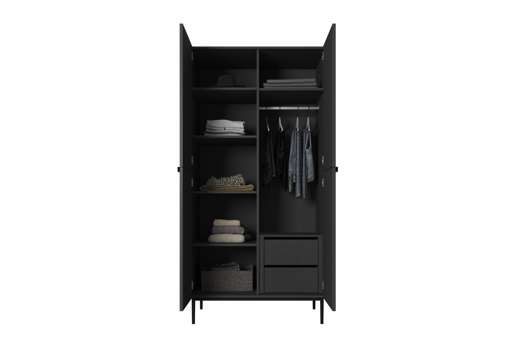 Dwudrzwiowa szafa Nicole z ukrytymi szufladami i metalowymi nogami 100 cm - czarny mat / czarne nóżki, Szerokość: 100, Wysokość: 220, Głębokość: 62, Wysokość nóżek: 20, Głębokość blatu: , Montaż: