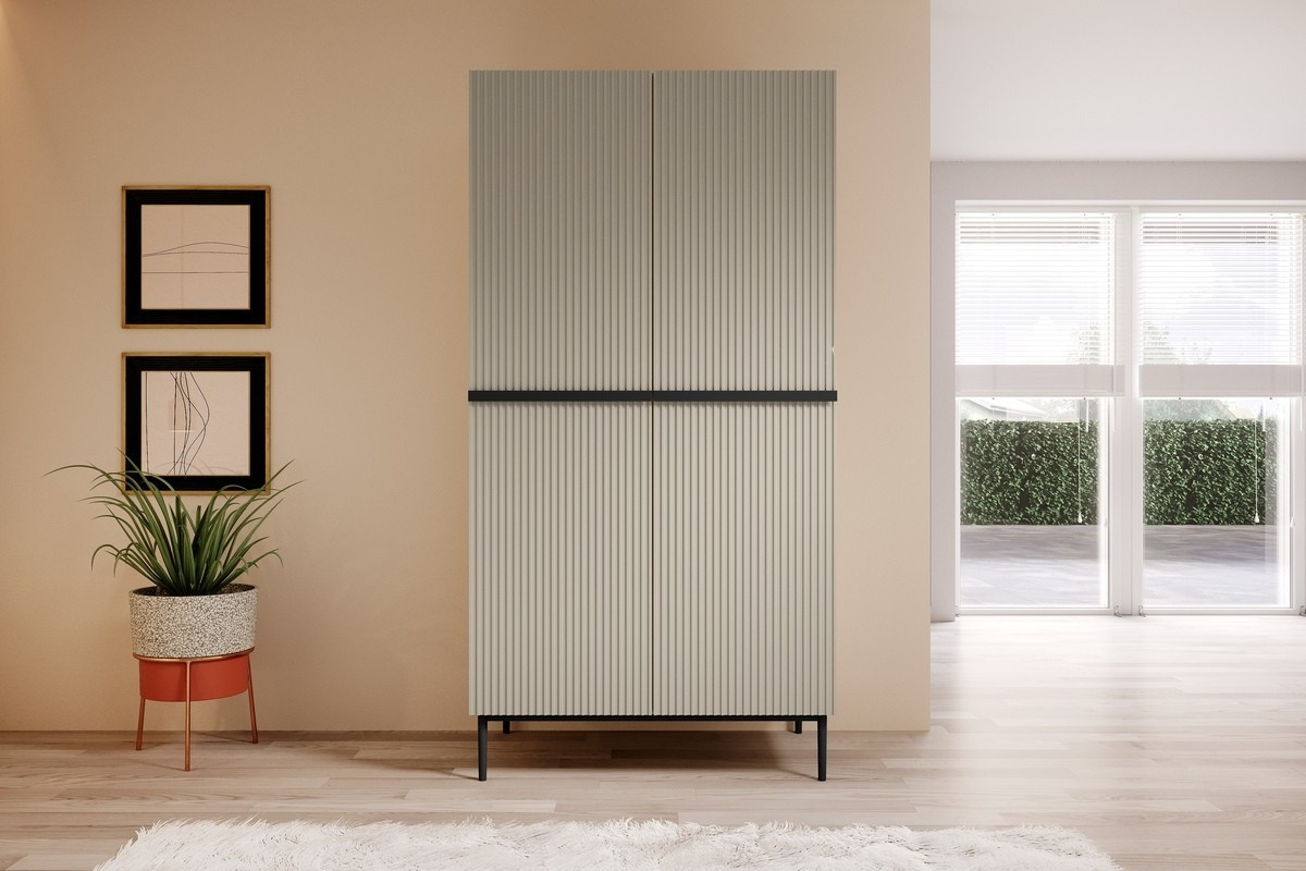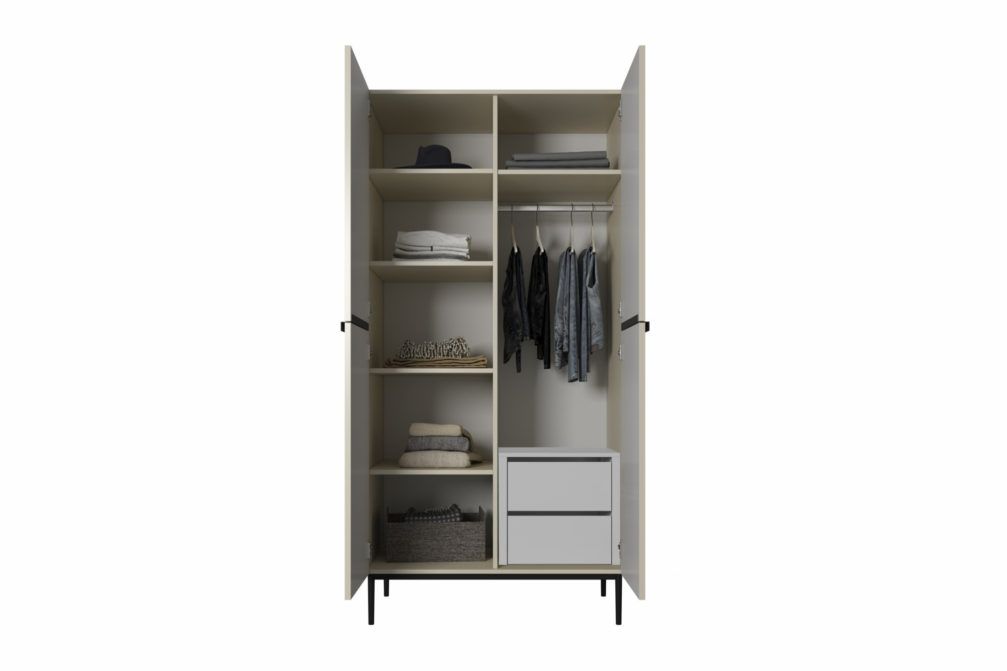 Dwudrzwiowa szafa Nicole z ukrytymi szufladami i metalowymi nogami 100 cm - kaszmir / czarne nóżki