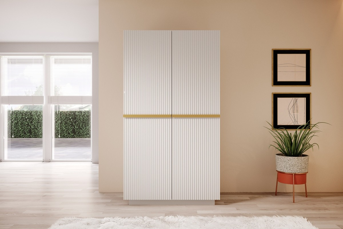 Dwudrzwiowa szafa Nicole z ukrytymi szufladami i metalowymi uchwytami 100 cm - biały mat / złote uchwyty