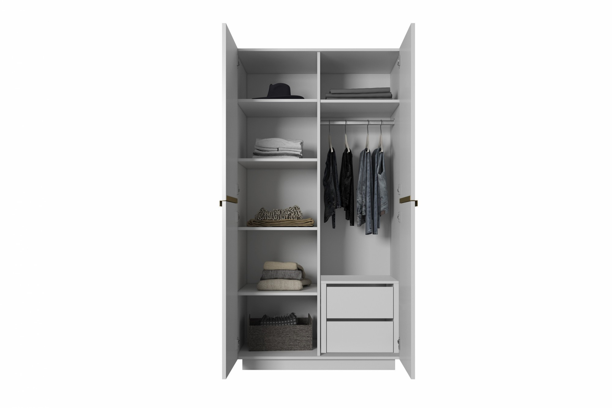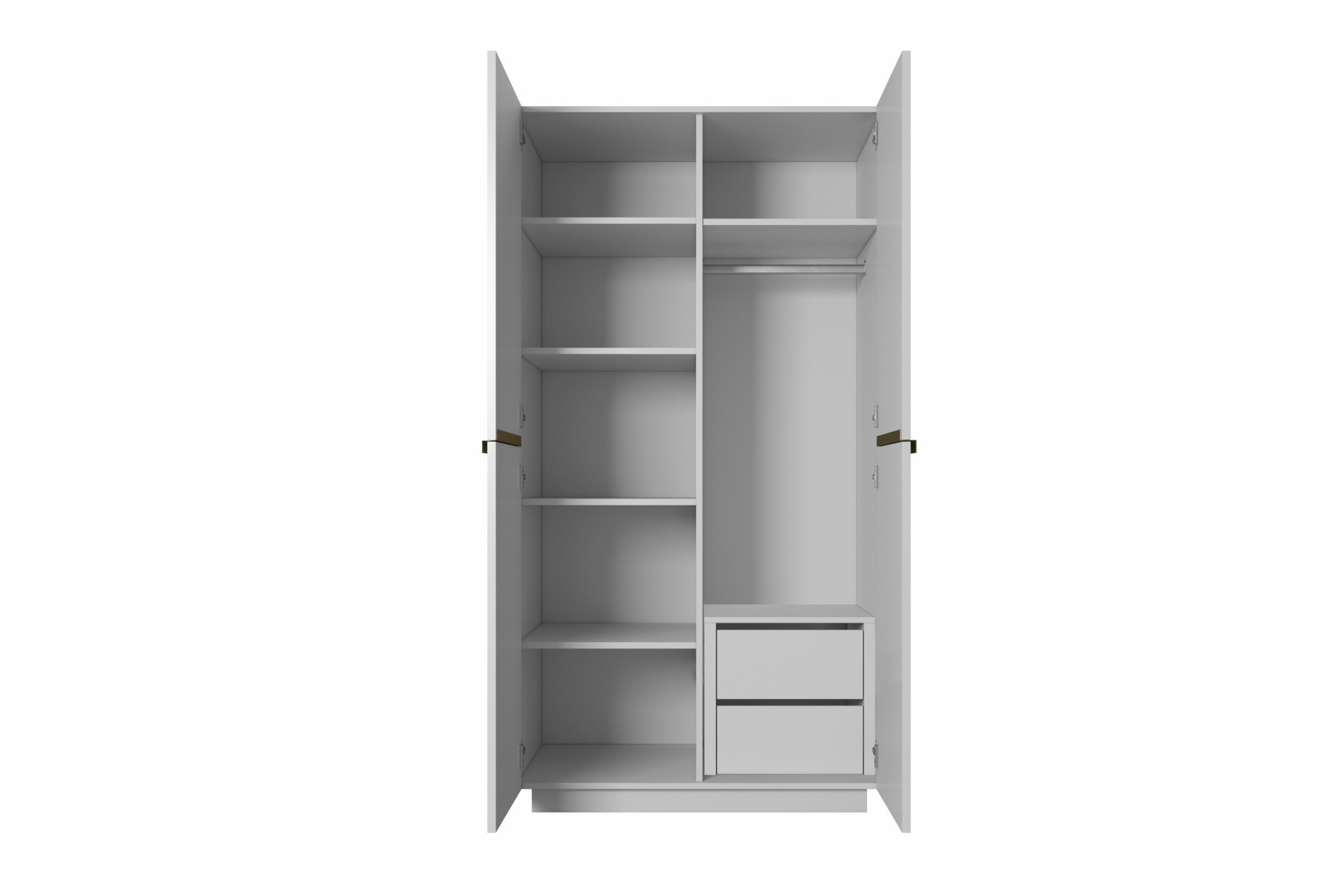 Dwudrzwiowa szafa Nicole z ukrytymi szufladami i metalowymi uchwytami 100 cm - biały mat / złote uchwyty, Szerokość: 100, Wysokość: 207, Głębokość: 62, Wysokość nóżek: , Głębokość blatu: , Montaż: