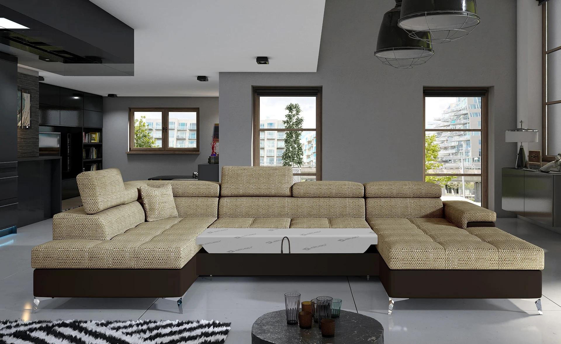 Eduardo is an original tasteful and exceptionally soft corner sofa, which brings a breath of freshness and luxury to the interior in which it is placed. The furniture, measuring 345 x 202 x 90 cm, guarantees maximum comfort for daytime rest, as well as for relaxation at night, as it is equipped with a sleeping function with an area designed for this - 125 x 265 cm. The dolphin mechanism also comes to the fore here, which intuitively and effortlessly unfolds the furniture to the desired position. Among other conveniences we can include a spacious bedding container located in the ottoman, as well as a comfortable seat made of HR foam that best adapts to our body during sleep. Other unique features of the corner sofa include: adjustable headrests, wide armrests, and high metal legs. The Eduardo corner sofa is available in a full range of fabrics from the Eltap pattern book, which allows you to arrange your interior in a very individual way.