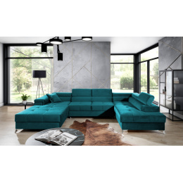 Eduardo is an original tasteful and exceptionally soft corner sofa, which brings a breath of freshness and luxury to the interior in which it is placed. The furniture, measuring 345 x 202 x 90 cm, guarantees maximum comfort for daytime rest, as well as for relaxation at night, as it is equipped with a sleeping function with an area designed for this - 125 x 265 cm. The dolphin mechanism also comes to the fore here, which intuitively and effortlessly unfolds the furniture to the desired position. Among other conveniences we can include a spacious bedding container located in the ottoman, as well as a comfortable seat made of HR foam that best adapts to our body during sleep. Other unique features of the corner sofa include: adjustable headrests, wide armrests, and high metal legs. The Eduardo corner sofa is available in a full range of fabrics from the Eltap pattern book, which allows you to arrange your interior in a very individual way.