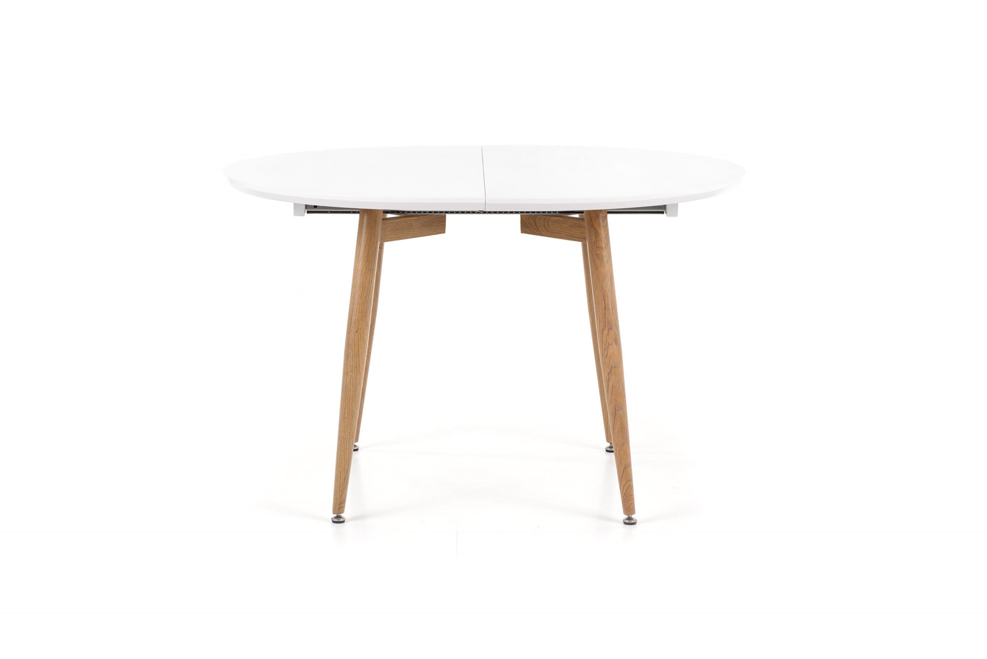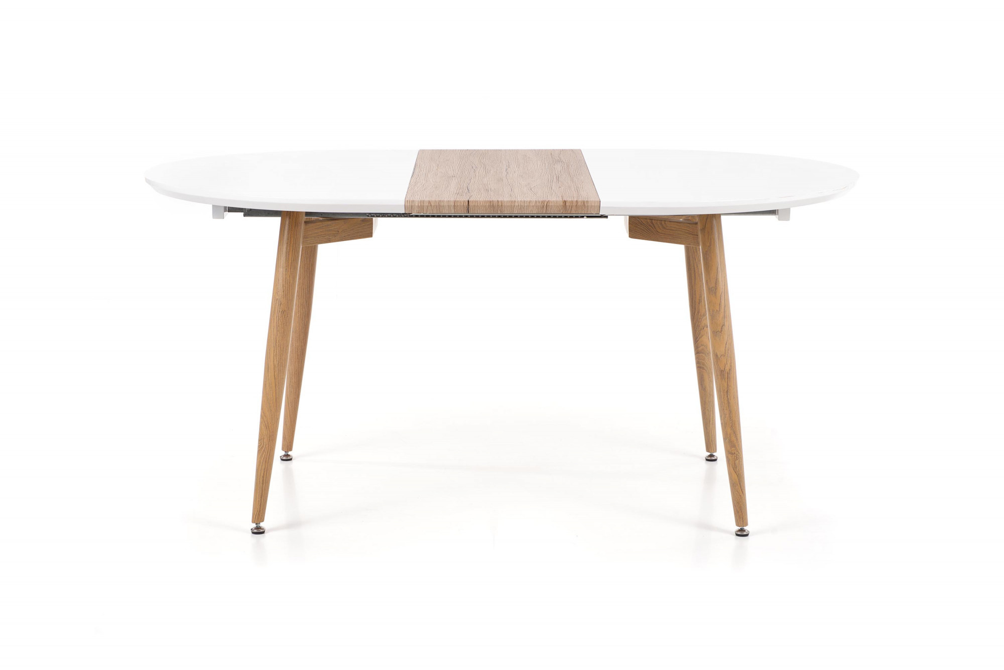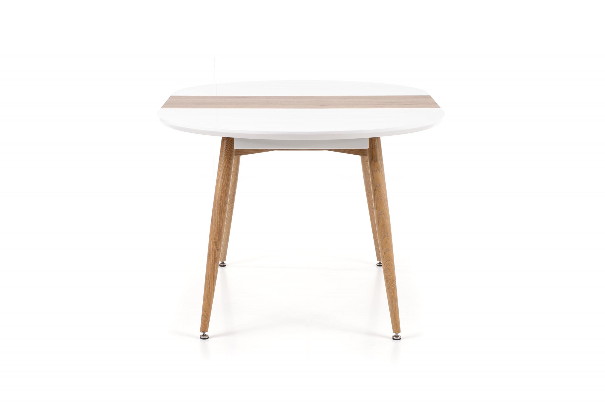 kihúzható asztal, méretek: 120-200/100/75 cm, anyag: lakkozott MDF / laminált MDF / lakkozott acél, szín: fehér / san remo tölgy, lábak - san remo tölgy