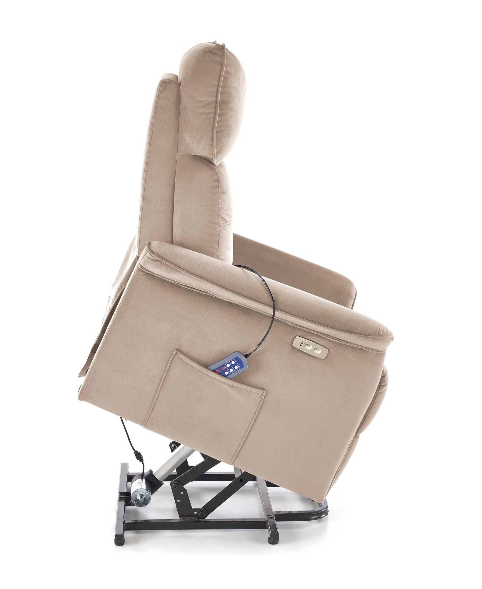 fotel z funkcją elektrycznego rozkładania / funkcja pionizacji / funkcja masażu / gniazdo USB, materiał: tkanina velvet - BLUVEL, kolor: beżowy #40