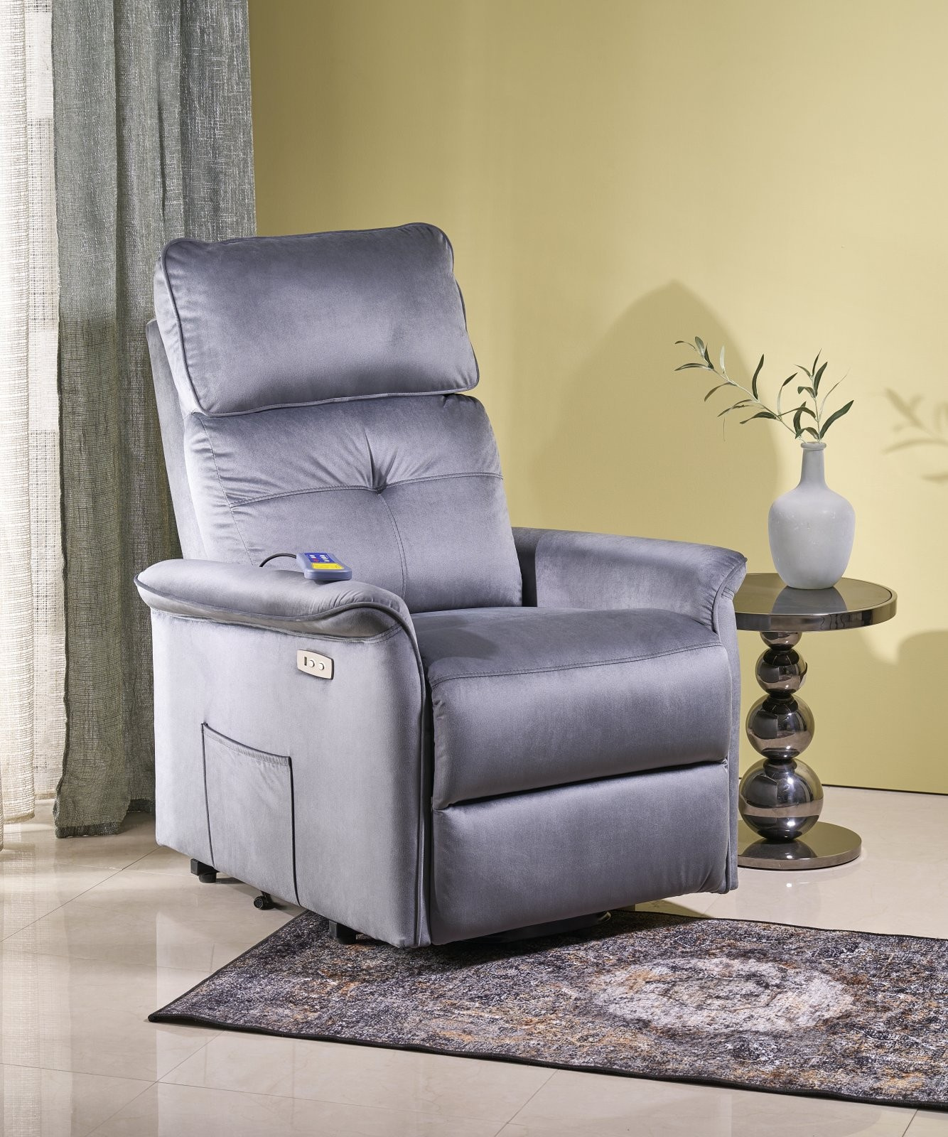 Elektromosan állítható és masszázs fotel SEMIR 2, Szürke Bluvel 14