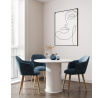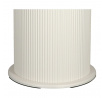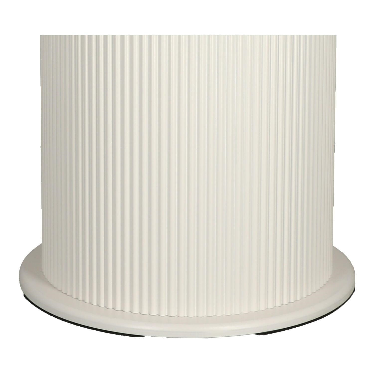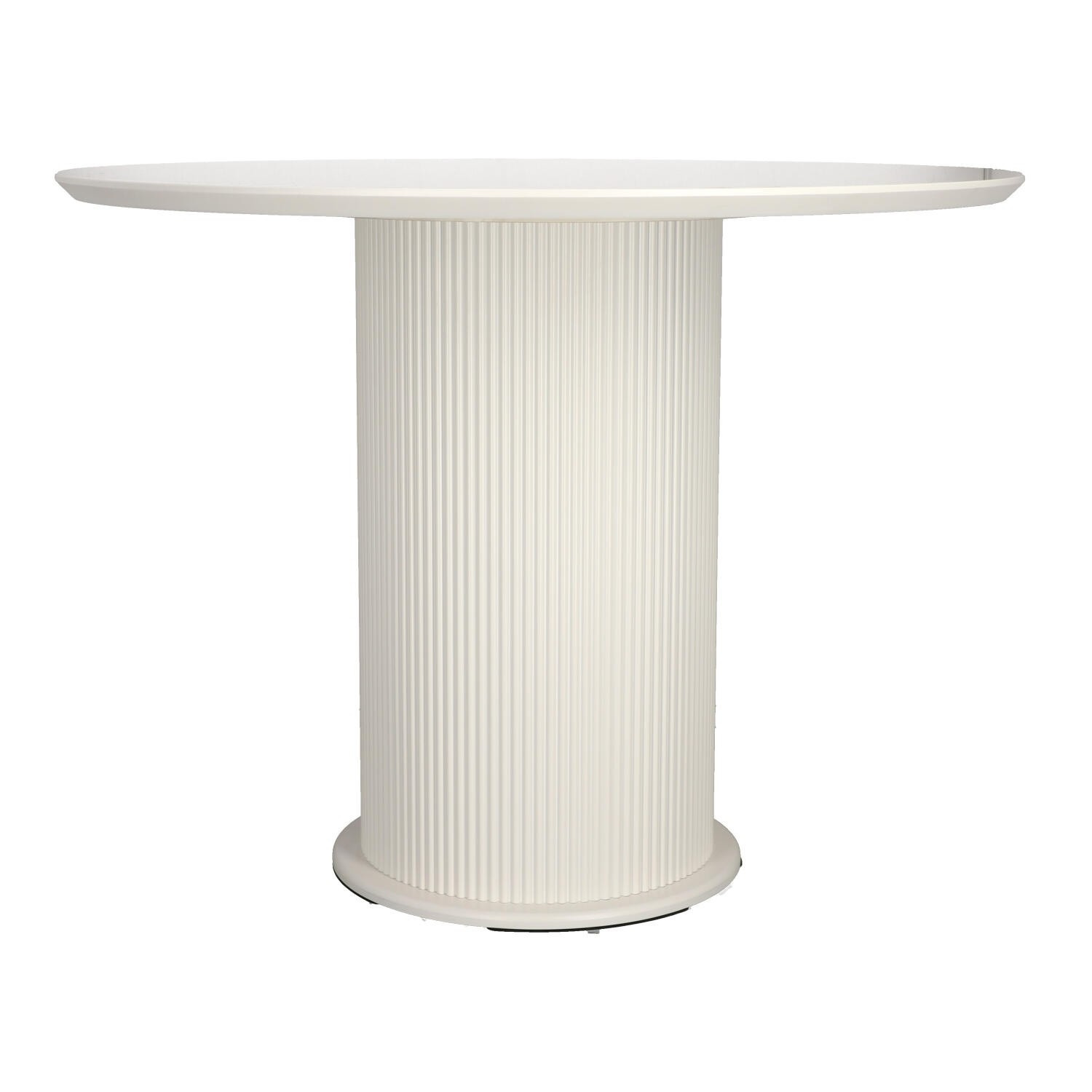 A kerek, fehér asztal egy lamellákkal díszített lábbal nemcsak a boho vagy skandináv enteriőrbe illik, hanem a modern, világos térbe is. Az asztal 100 cm átmérőjű, melamin és MDF lap kombinációjából készült. A melamin, amelyet az asztallaphoz használnak, nagyon tartós, nehezen éghető, és elsősorban ellenáll a víz, a magas hőmérséklet és a fény hatásainak. Az alap egy maratott MDF lap. Az egész bútor fehérre lett festve, ami finom elemmé teszi, és biztosan nem terheli meg a belső teret. Csomagolva 2 kartonban (108x108x8cm 18kg és 52x52x78cm 16kg)