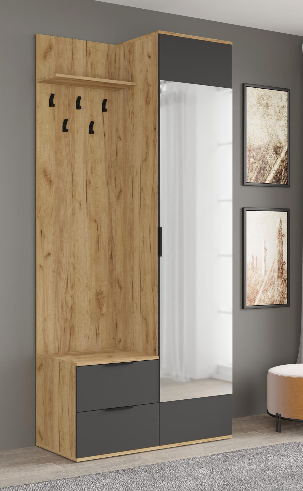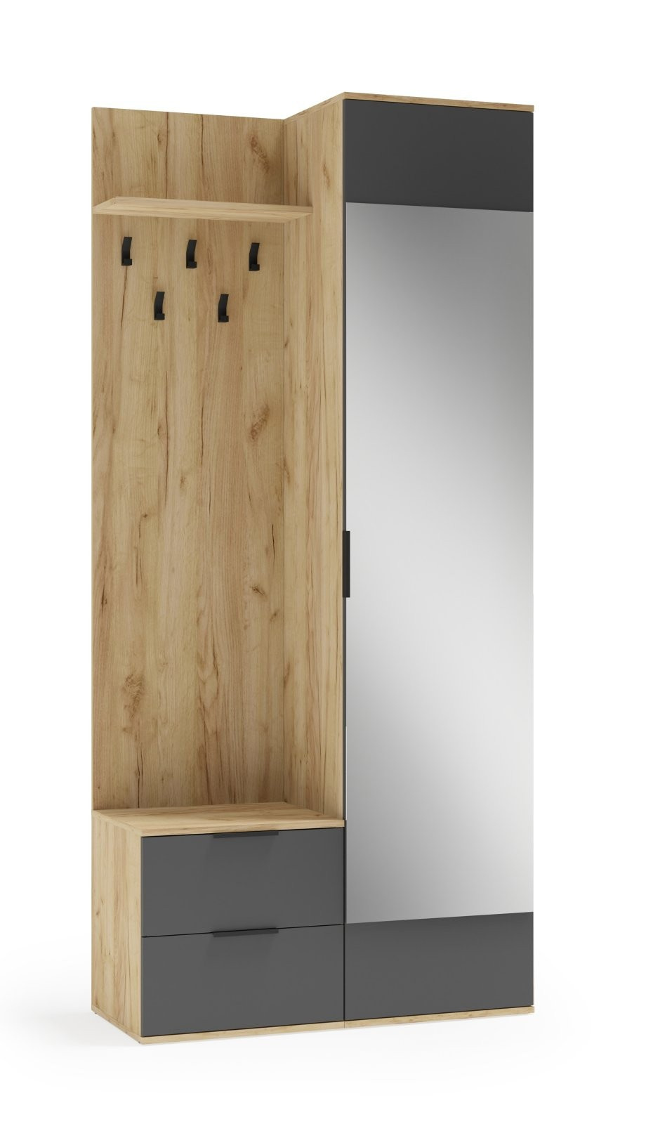 méretek: 100/45/202,5 cm, anyag: tükör / laminált bútorlap, arany tölgy / antracit
