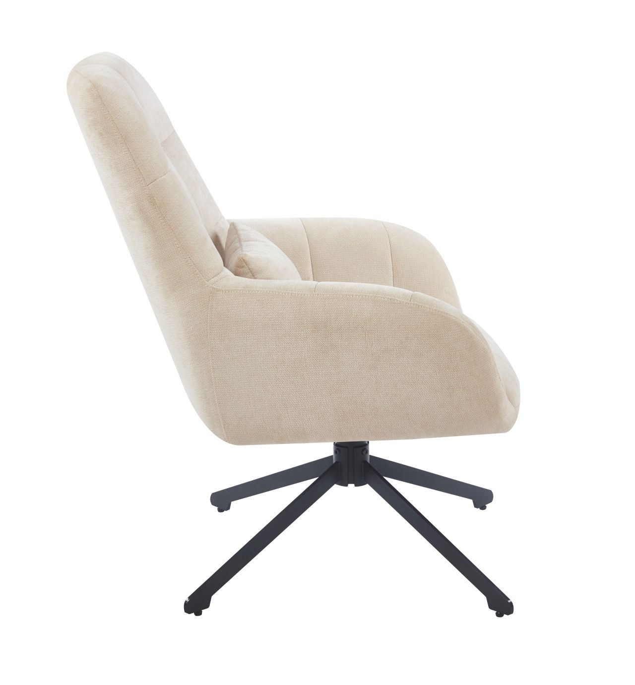 A szék ülőfelülete 360 fokban forgatható Méretek: - ülőfelület szélessége: 48 cm - teljes szélesség: 71 cm - ülőfelület magassága: 50 cm - teljes magasság: 95 cm - ülőfelület mélysége: 51 cm - párna: 31x21 cm Anyag: - kárpit: Holms szövet - keret: porfestett fém Szín: - kárpit: bézs - keret: fekete Egyéb: - forgatható ülőfelület - párna