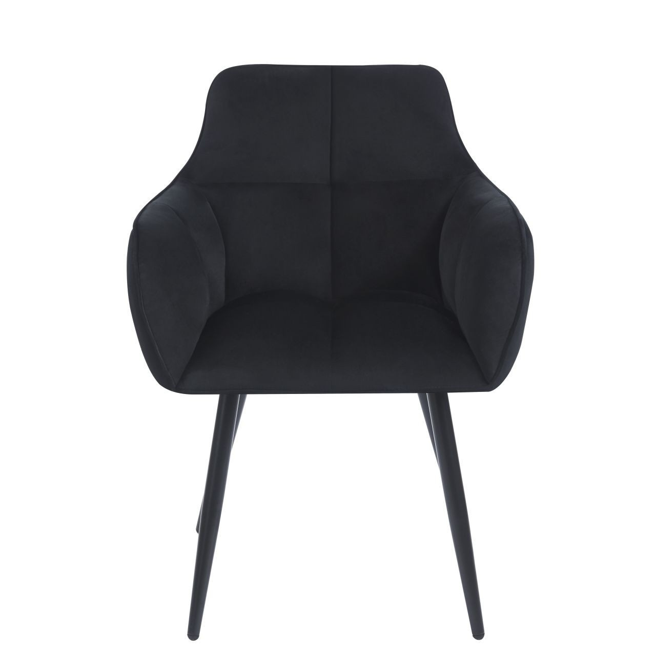 Méretek: - ülés szélessége: 42 cm - teljes szélesség: 61 cm - ülés magassága: 49 cm - teljes magasság: 85 cm - ülés mélysége: 46 cm Anyag: - kárpit: bársony - keret: porszórt festett fém Szín: - ülés: fekete - keret: fekete