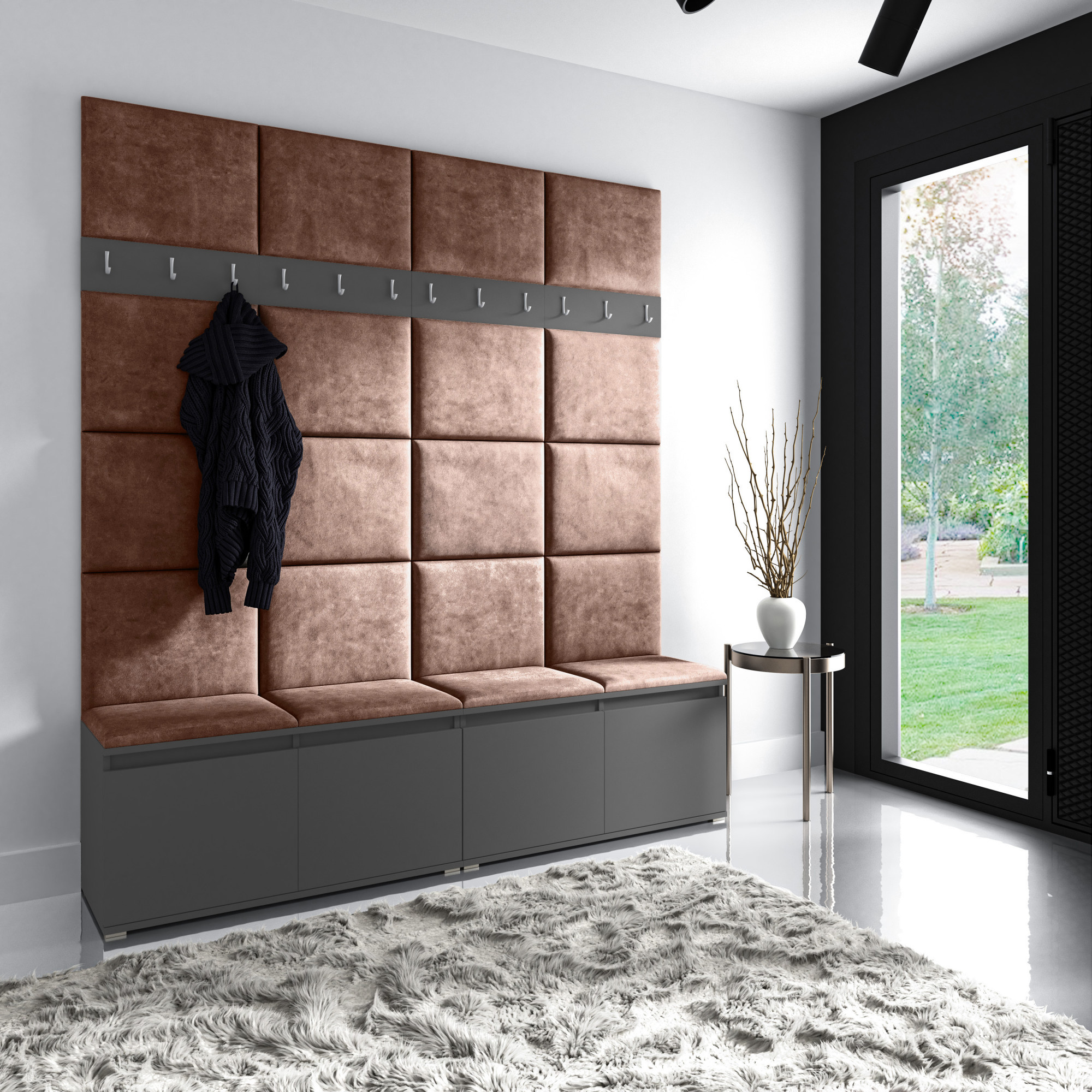 A paneleket kárpitszövettel vonták be. A paneleket a falhoz ragasztóval vagy kétoldalas tépőzárral rögzítik.