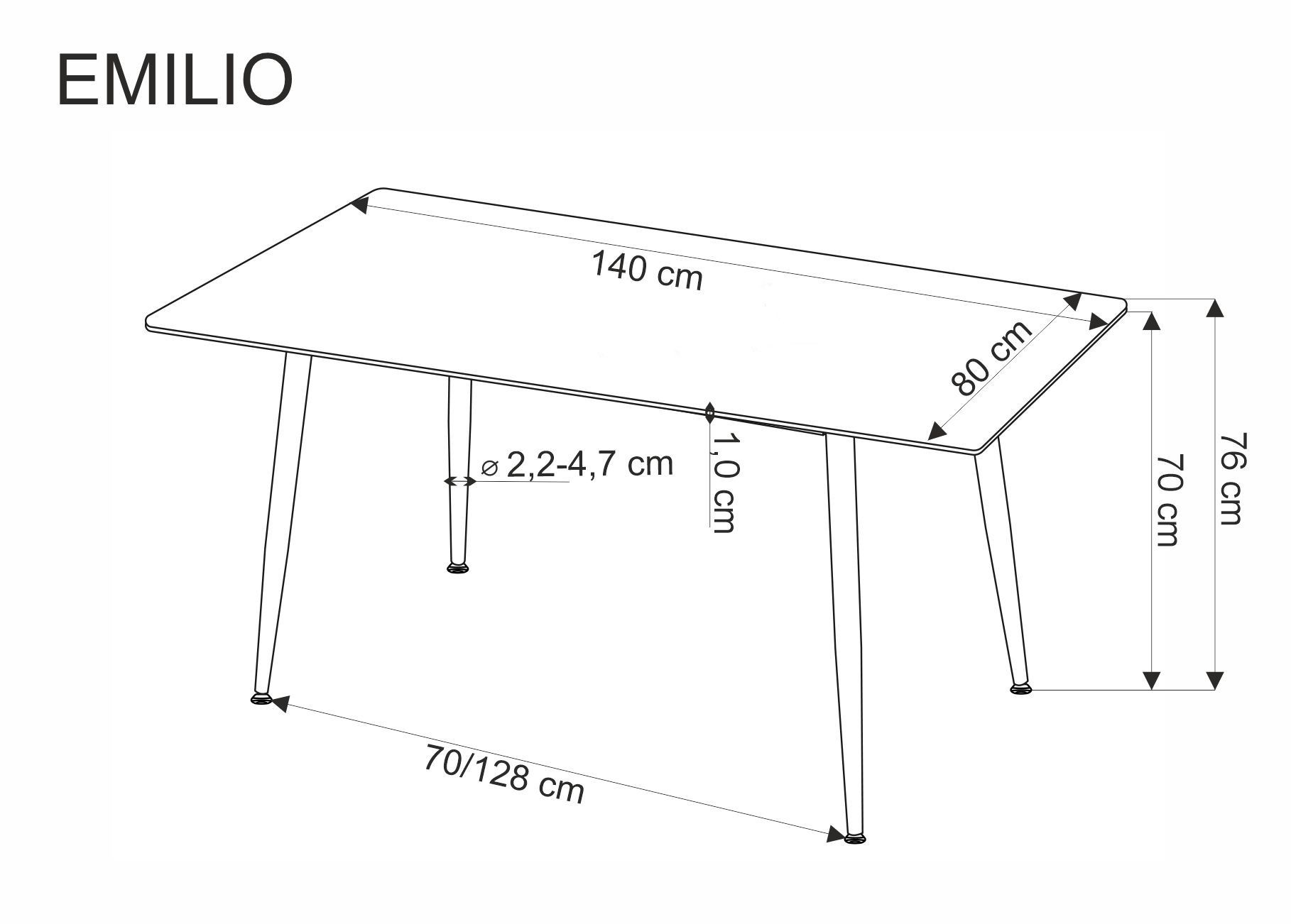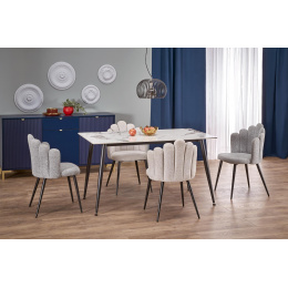 EMILIO 120 étkezőasztal, Fehér márvány hatás/Fekete