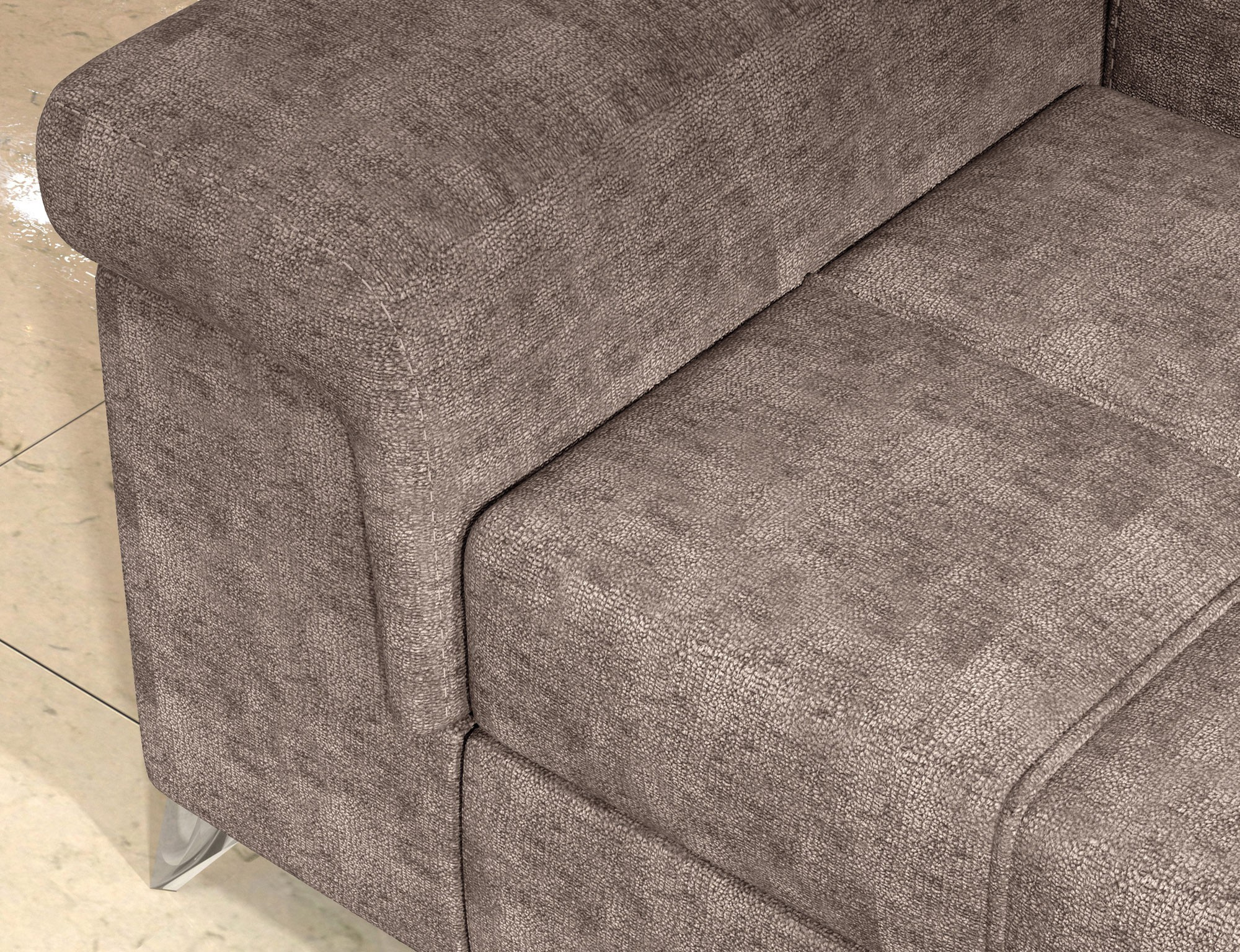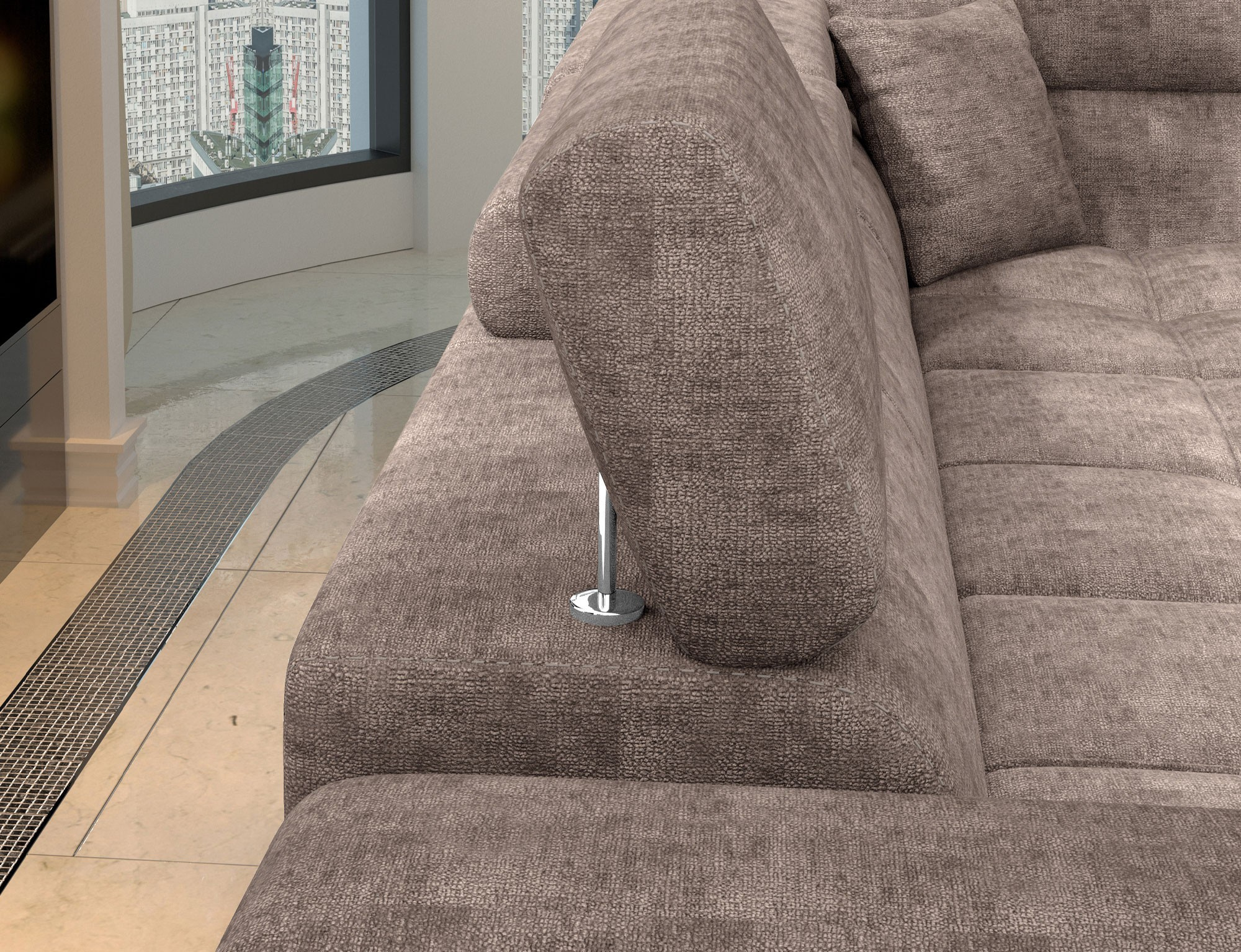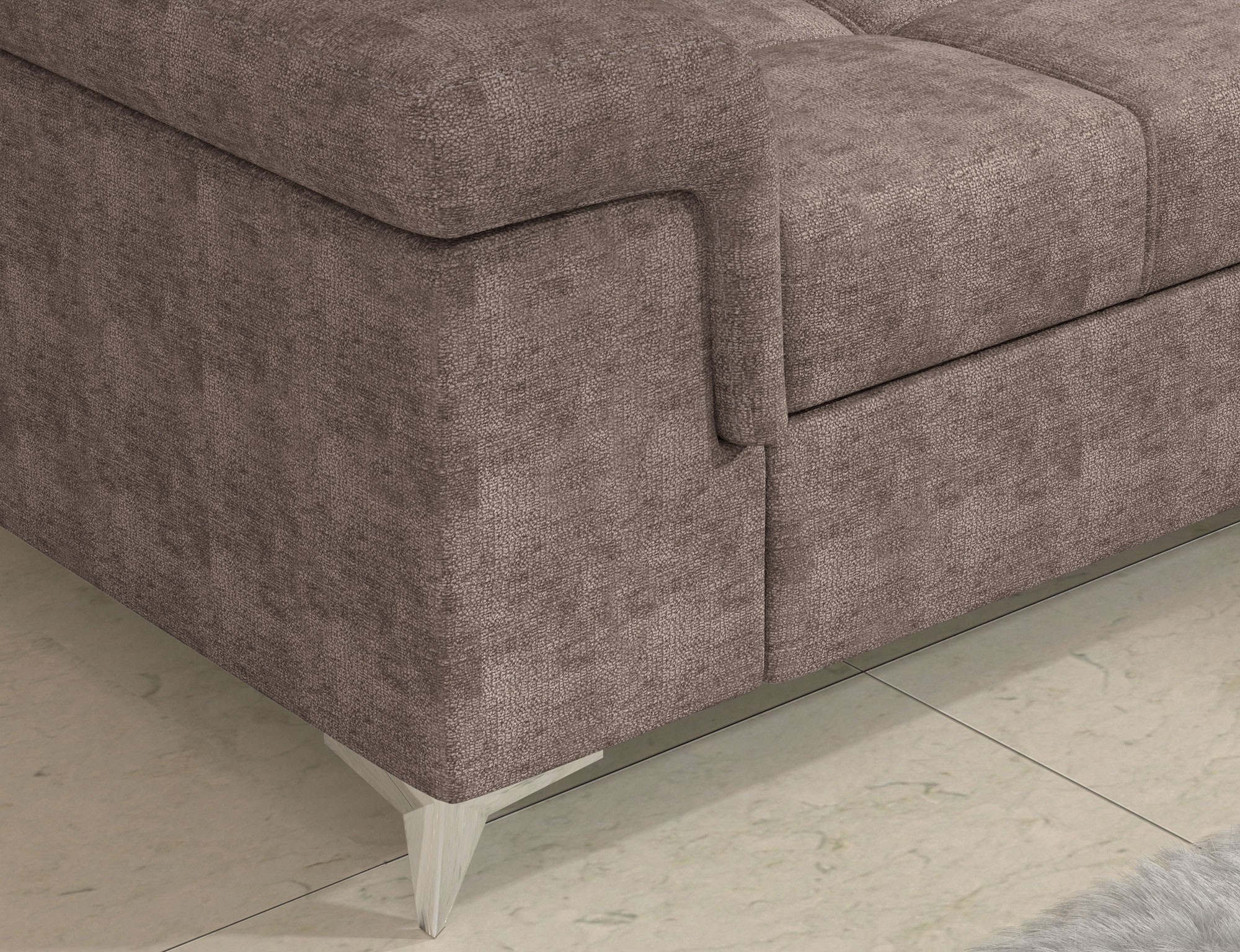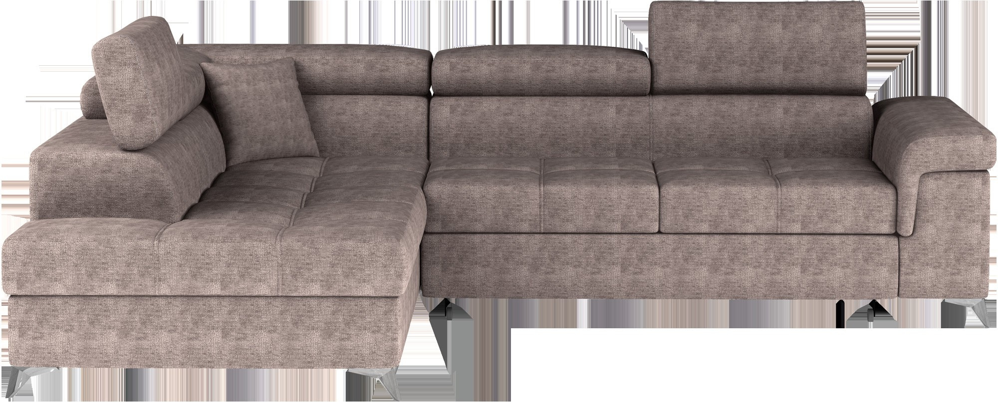 Eridano is a multifunctional, comfortable and elegant L-shaped corner unit that can be a luxurious finish to any living room. It is a high-quality piece of furniture, synonymous with comfort and class, thanks to a wide seat with a depth of 60 cm and solid filling - a wave spring with T3030 foam, as well as high-quality elastic HR foam gives the effect of exceptional elasticity while properly supporting the body during rest. Eridano, with dimensions of 275 x 202 x 88 cm, means not only comfort, but also a good night's sleep thanks to an exceptionally large sleeping area. The dolphin-type unfolding mechanism allows for simple and intuitive unfolding of the sofa, which is transformed into a spacious bed measuring 125 x 205 cm. In addition, our corner sofa bed is also equipped with a practical and spacious storage for bedding located in an ottoman that opens upwards. The characteristic features of this model include: a wide armrest, an upholstered back, contoured backrest with movable headrests, metal, chrome legs with high gloss, as well as a multitude of variants in rich colours. Should you be interested in what else our Eridano has to offer - we invite you to test our corner unit.