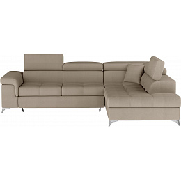 Eridano is a multifunctional, comfortable and elegant L-shaped corner sofa that can be a luxurious finishing touch to any living room. It is a high-quality piece of furniture, synonymous with comfort and class, thanks to its wide seat with a depth of 60 cm and solid filling - corrugated spring together with T30 foam, as well as high quality HR elastic foam gives the effect of exceptional resilience while properly supporting the body during rest. Behind the Eridano with dimensions of 275 x 202 x 90 cm, there is not only comfort, but also well-slept nights through an exceptionally large sleeping surface. The folding type of the dolphin mechanism allows you to simply and intuitively unfold the sofa, which transforms into a spacious bed of 125 x 193 cm. In addition, our corner sofa is also equipped with a practical and spacious bedding storage located in the upward-opening ottoman.Among the characteristics of this model we can include a wide armrest, upholstered back, contoured backrest with movable headrests, High-gloss metal chrome legs, as well as a multitude of variants in rich colors. If you are curious about what else our Eridano has to offer - we invite you to test our corner sofa.