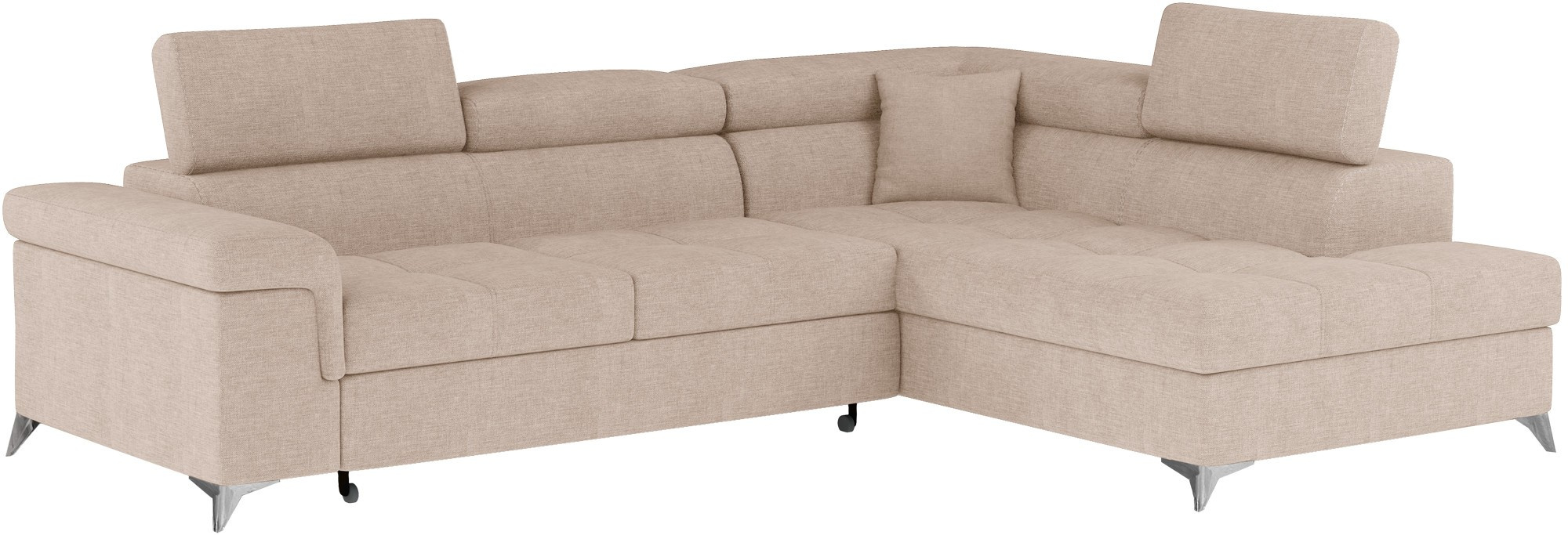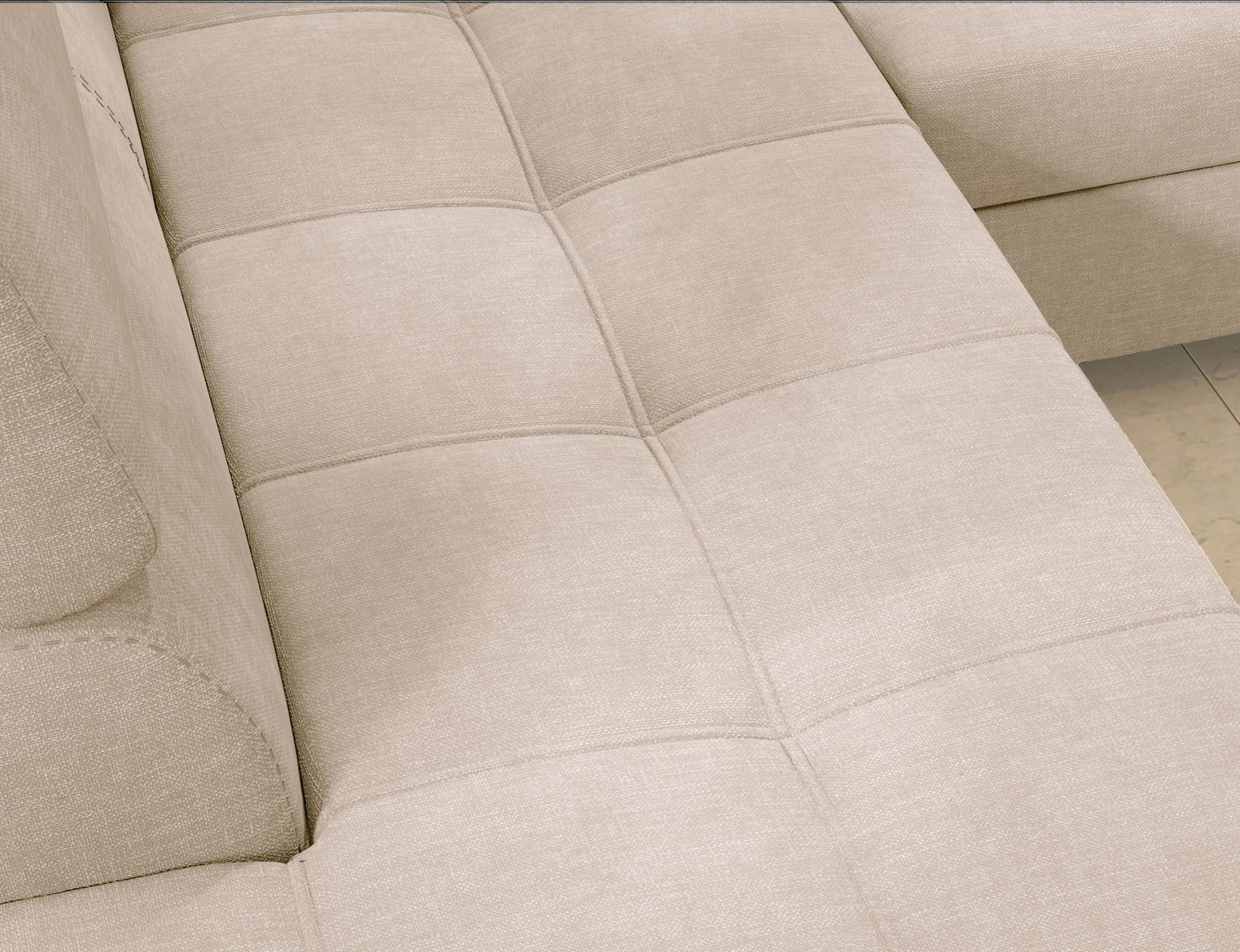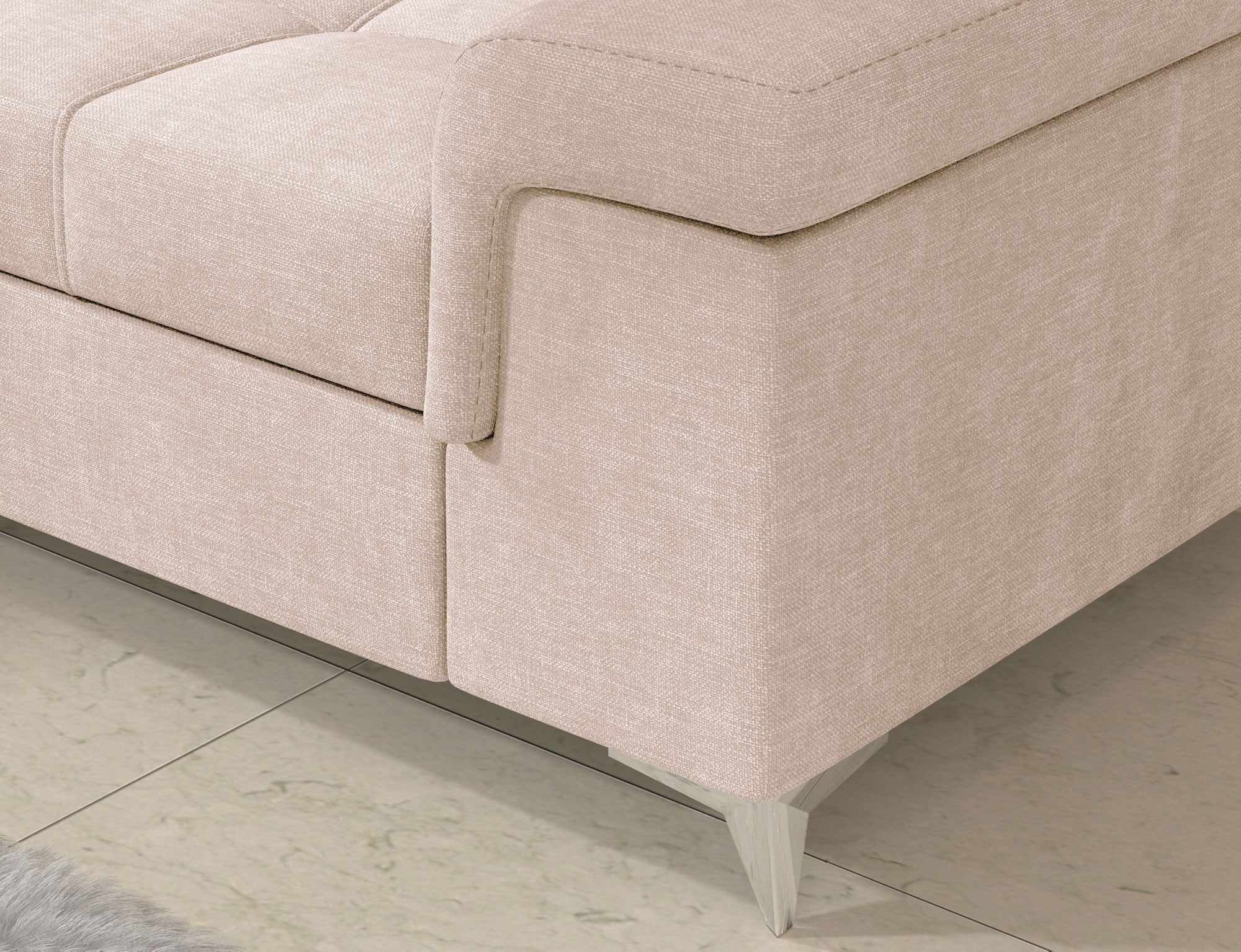 Eridano is a multifunctional, comfortable and elegant L-shaped corner unit that can be a luxurious finish to any living room. It is a high-quality piece of furniture, synonymous with comfort and class, thanks to a wide seat with a depth of 60 cm and solid filling - a wave spring with T3030 foam, as well as high-quality elastic HR foam gives the effect of exceptional elasticity while properly supporting the body during rest. Eridano, with dimensions of 275 x 202 x 88 cm, means not only comfort, but also a good night's sleep thanks to an exceptionally large sleeping area. The dolphin-type unfolding mechanism allows for simple and intuitive unfolding of the sofa, which is transformed into a spacious bed measuring 125 x 205 cm. In addition, our corner sofa bed is also equipped with a practical and spacious storage for bedding located in an ottoman that opens upwards. The characteristic features of this model include: a wide armrest, an upholstered back, contoured backrest with movable headrests, metal, chrome legs with high gloss, as well as a multitude of variants in rich colours. Should you be interested in what else our Eridano has to offer - we invite you to test our corner unit.