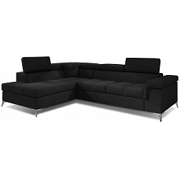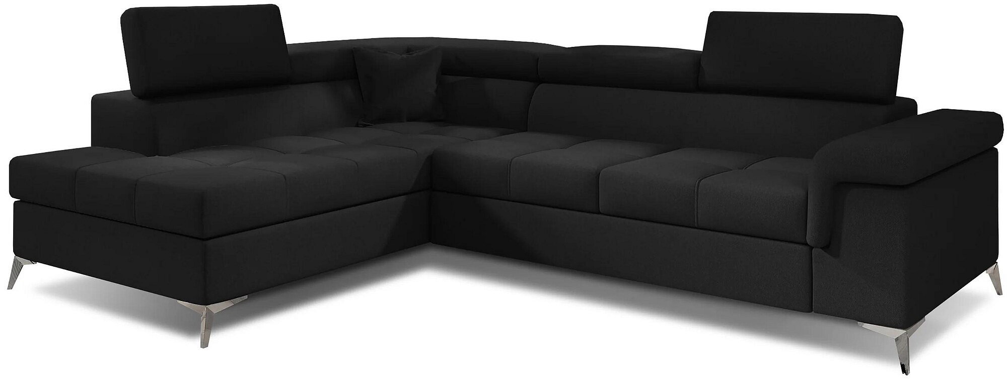 Eridano is a multifunctional, comfortable and elegant L-shaped corner sofa that can be a luxurious finishing touch to any living room. It is a high-quality piece of furniture, synonymous with comfort and class, thanks to its wide seat with a depth of 60 cm and solid filling - corrugated spring together with T30 foam, as well as high quality HR elastic foam gives the effect of exceptional resilience while properly supporting the body during rest. Behind the Eridano with dimensions of 275 x 202 x 90 cm, there is not only comfort, but also well-slept nights through an exceptionally large sleeping surface. The folding type of the dolphin mechanism allows you to simply and intuitively unfold the sofa, which transforms into a spacious bed of 125 x 193 cm. In addition, our corner sofa is also equipped with a practical and spacious bedding storage located in the upward-opening ottoman.Among the characteristics of this model we can include a wide armrest, upholstered back, contoured backrest with movable headrests, High-gloss metal chrome legs, as well as a multitude of variants in rich colors. If you are curious about what else our Eridano has to offer - we invite you to test our corner sofa.