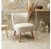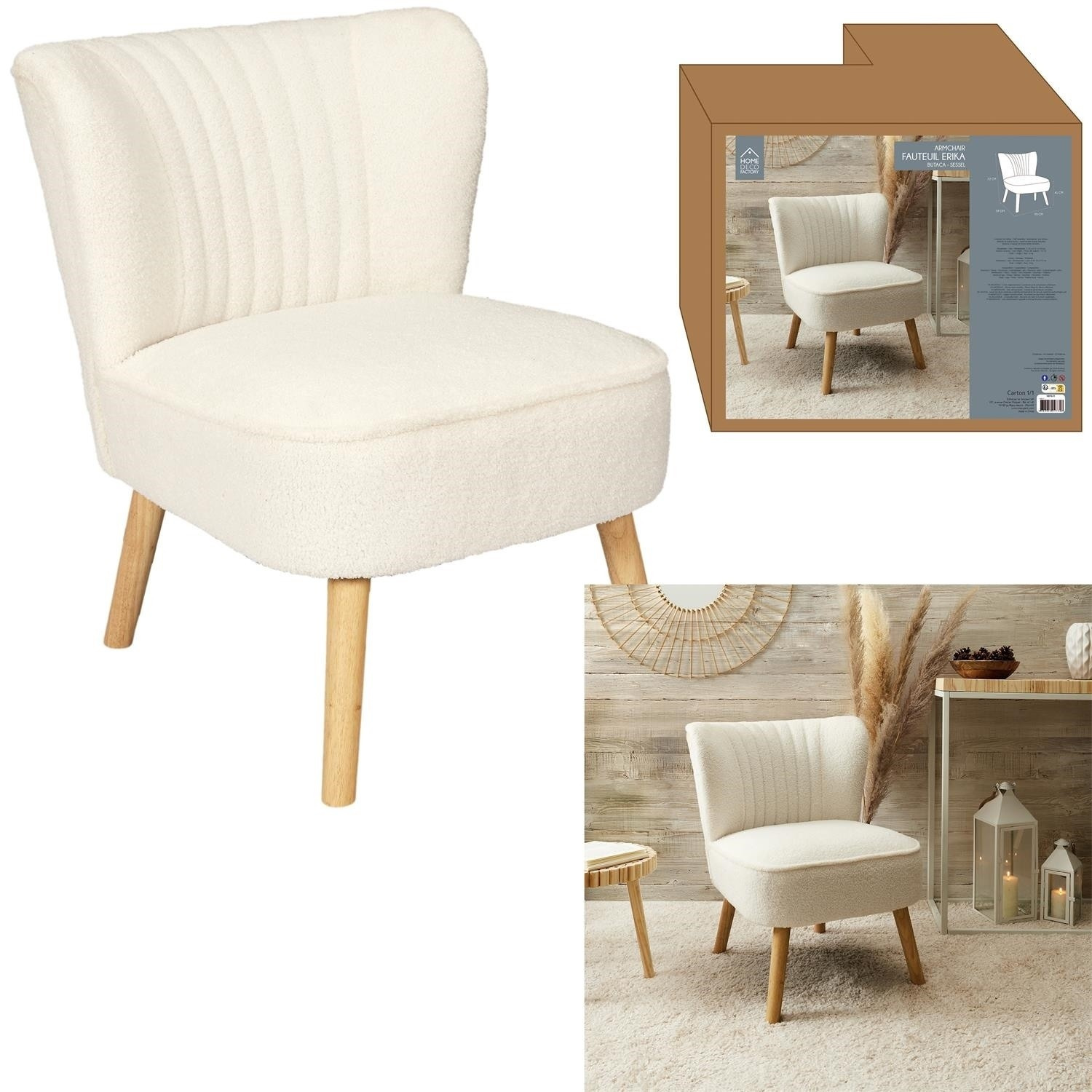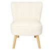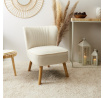 Kényelmes füles fotel fehér boucle szövetben, amely bútor mind a nyugodt pihenéshez, mind a könyvolvasáshoz vagy szoptatáshoz ideális. A mély háttámlájú és alacsony ülésű szék nyugalmat és kényelmet biztosít. A szék fa, forgatott, kaucsuk lábakkal természetes színben tökéletesen illeszkedik a modern, boho, japandi és skandináv stílusú belső terekbe. Díszes, fehér szövet, amely 100% poliészterből készült, puha szerkezete kényelmet biztosít. A szék súlya 9 kg. Max. a szék terhelhetősége 110 kg. Egyszerű összeszerelést igényel (lábak rögzítése csavarozással). Nem rakódik le. Nem alkalmas kültéri használatra. A habszivacs vastagsága az ülésen 24 kg/m3. A háttámla habsűrűsége: 24kg/m3