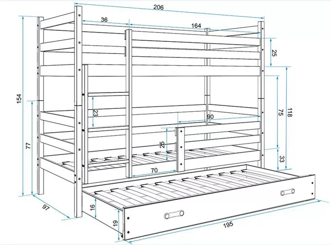 - Szuflada - wykonana z płyty wiórowej, posiada funkcję dodatkowego spania.