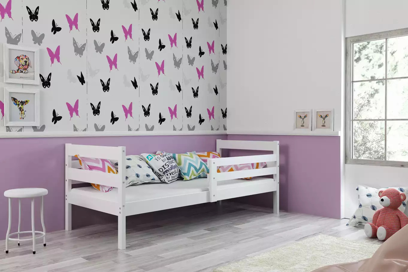 - Rama łóżka - wykonana z drewna sosnowego, pomalowana lakierem wodnym.