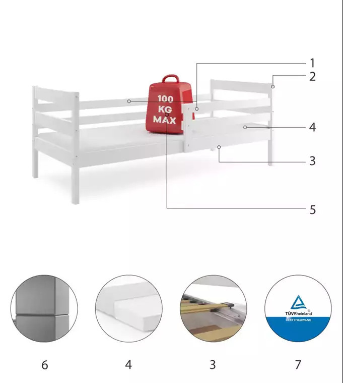 - Certyfikowane łóżko - jakość i bezpieczeństwo zgodnie z normami TUV.