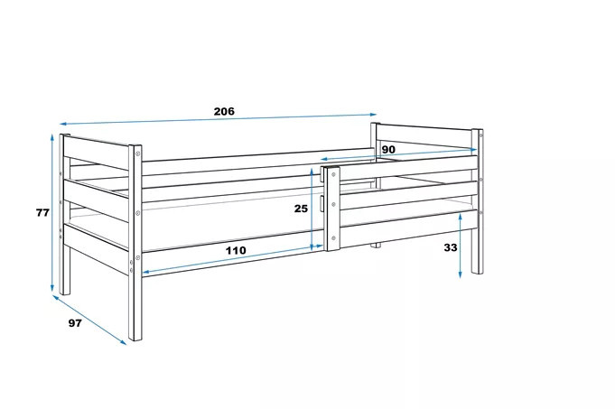 - Rama łóżka - wykonana z drewna sosnowego, pomalowana lakierem wodnym.
