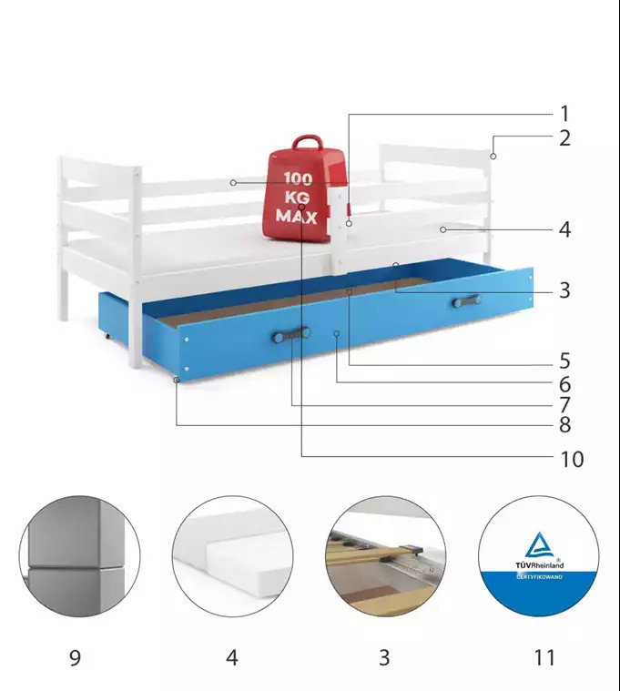 ERYK PARTEROWE RAMA BIAŁY SZUFLADA NIEBIESKI 90 X 200 KPL