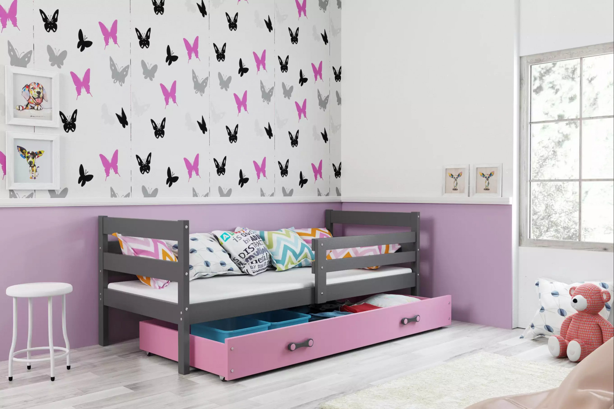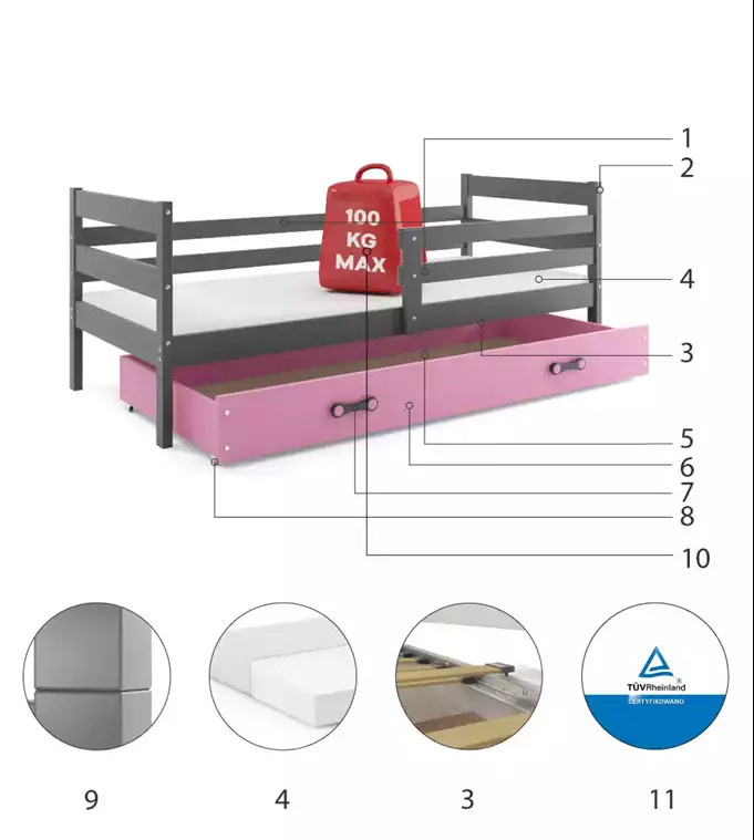 ERYK PARTEROWE RAMA GRAFIT SZUFLADA RÓŻOWY BEZ MATERACY 90 X 200 KPL