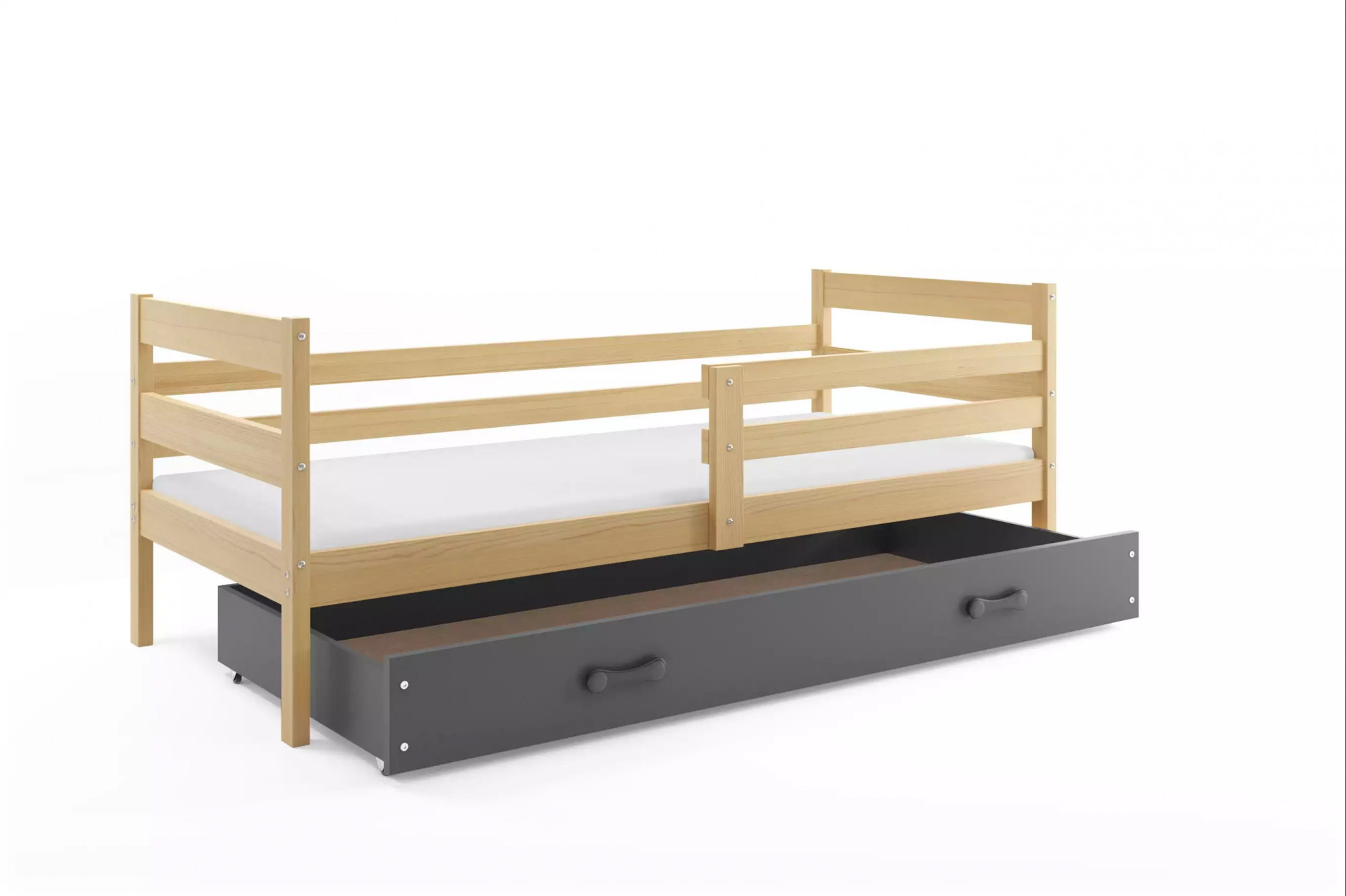 ERYK PARTEROWE RAMA SOSNA SZUFLADA GRAFIT BEZ MATERACY 80 X 190 KPL