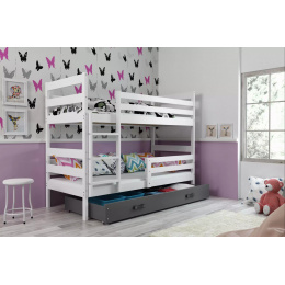 ERYK PIĘTROWE RAMA BIAŁY SZUFLADA GRAFIT BEZ MATERACY 90 X 200 KPL