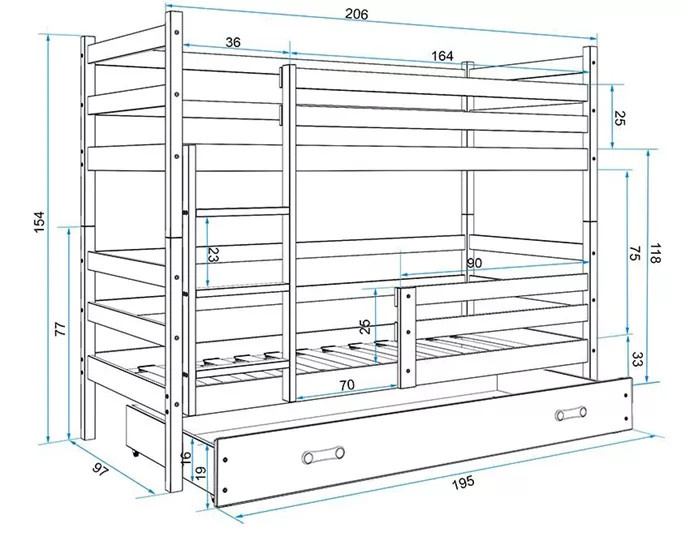| Ágy a fekvőhelyek száma szerint | 2 gyermek számára |