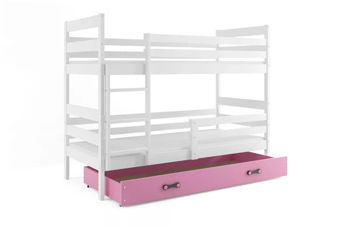 ERYK PIĘTROWE RAMA BIAŁY SZUFLADA RÓŻOWY BEZ MATERACY 90 X 200 KPL