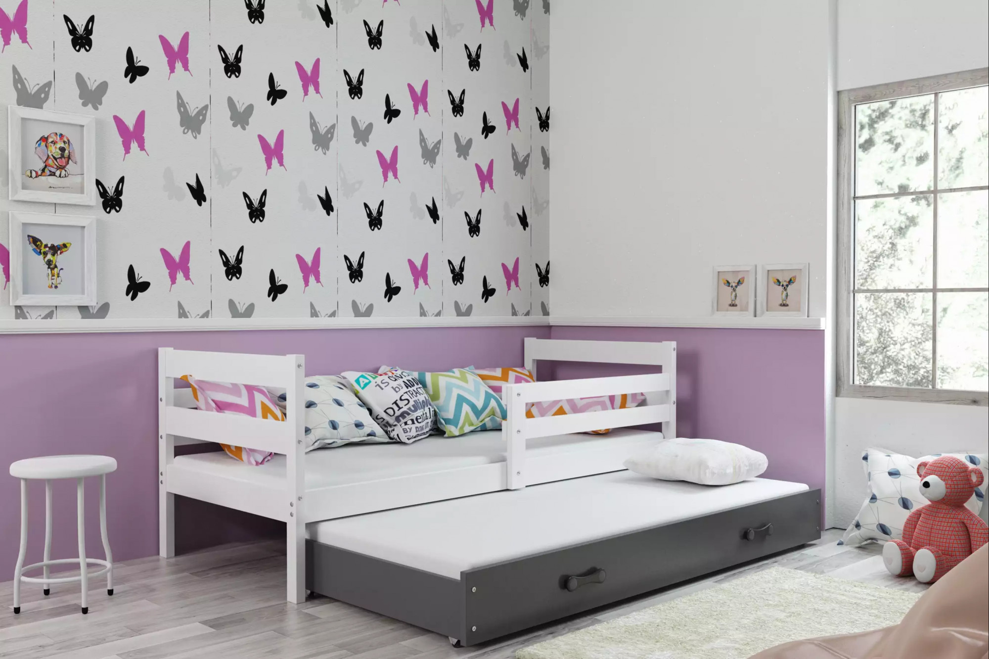 ERYK PODWÓJNE RAMA BIAŁY SZUFLADA GRAFIT BEZ MATERACY 80 X 190 KPL