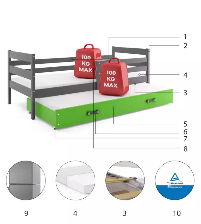 - Certyfikowane łóżko - jakość i bezpieczeństwo zgodnie z normami TUV.