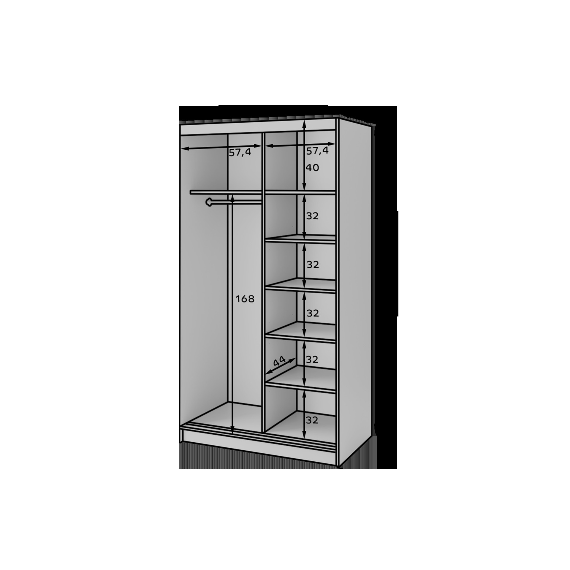 | Szekrénytípus | 2-ajtós szekrény |