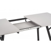 méretek: 140-180/80/77 cm, összecsukható asztal, anyag: lakkozott MDF / porszórt acél, szín: asztallap - világosszürke, lábak - fekete