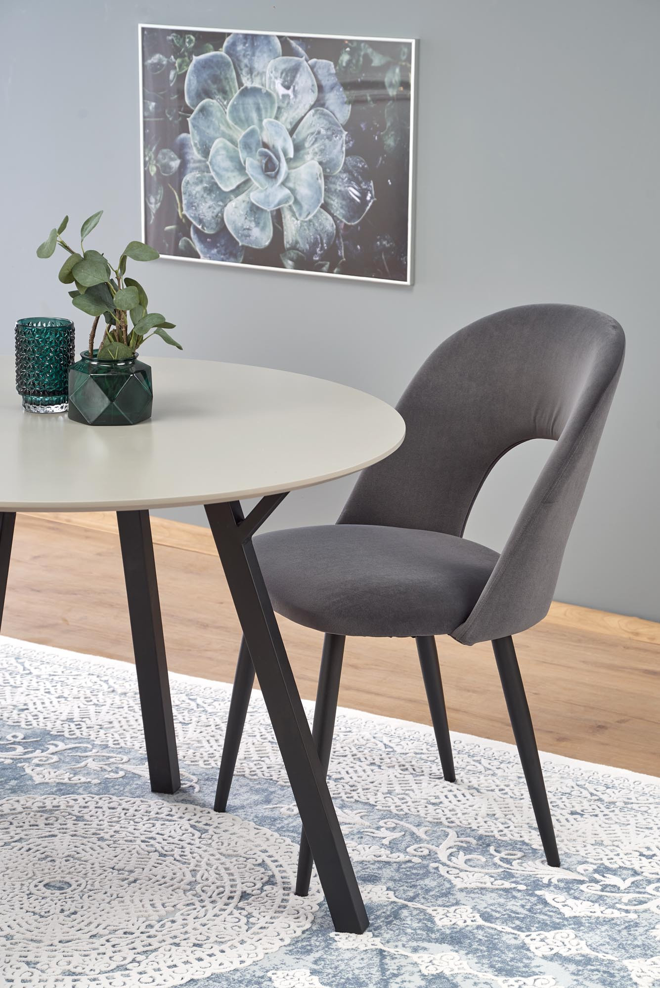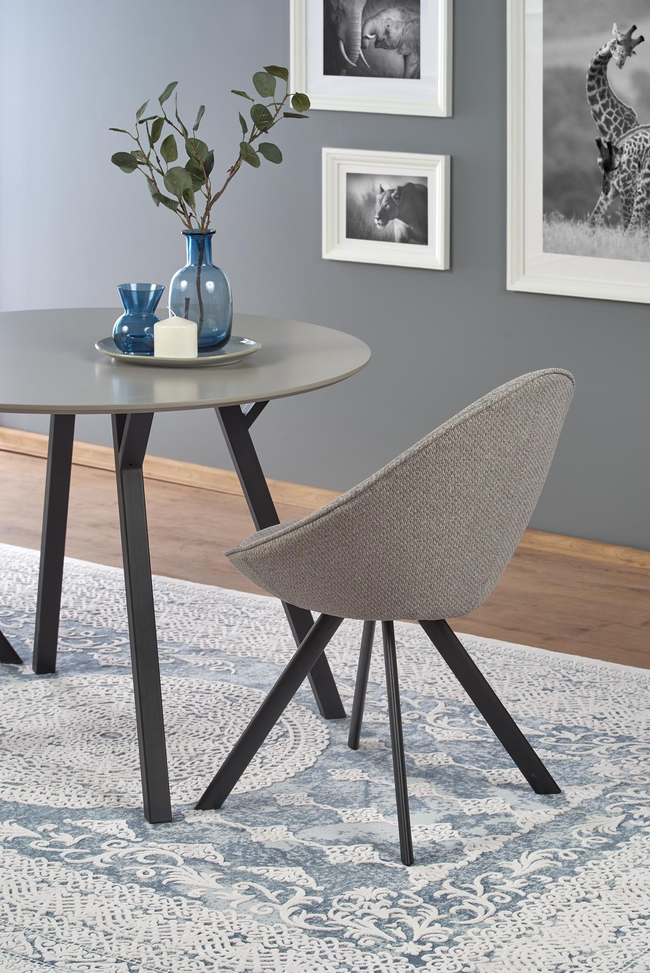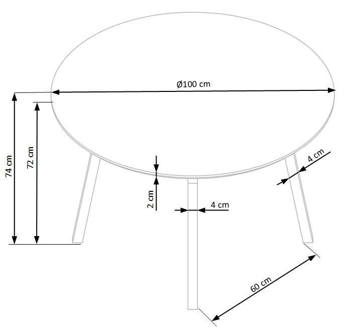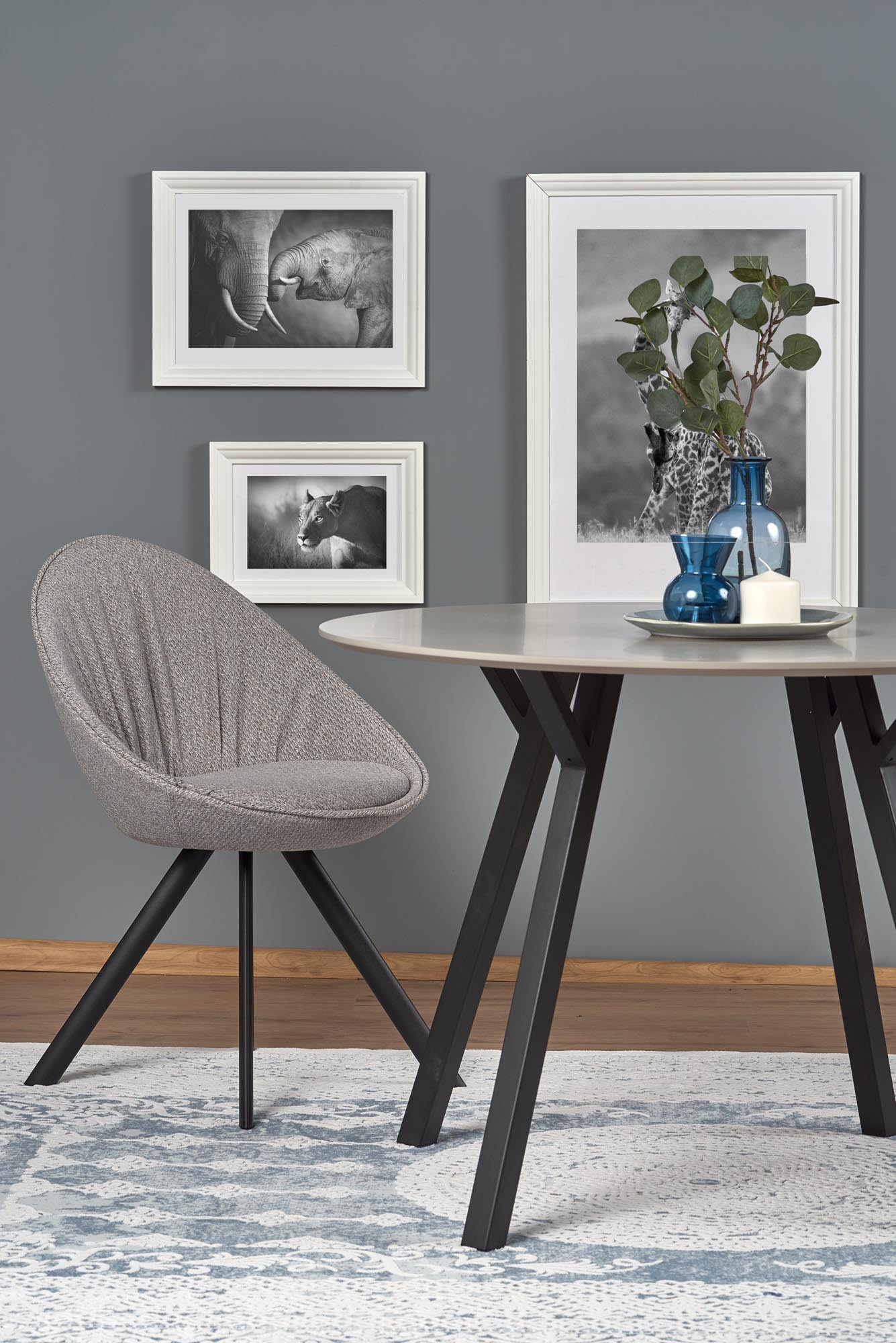 méretek: o100/74 cm, anyag: lakkozott MDF / porszórt acél, szín: asztallap - világosszürke, lábak - fekete