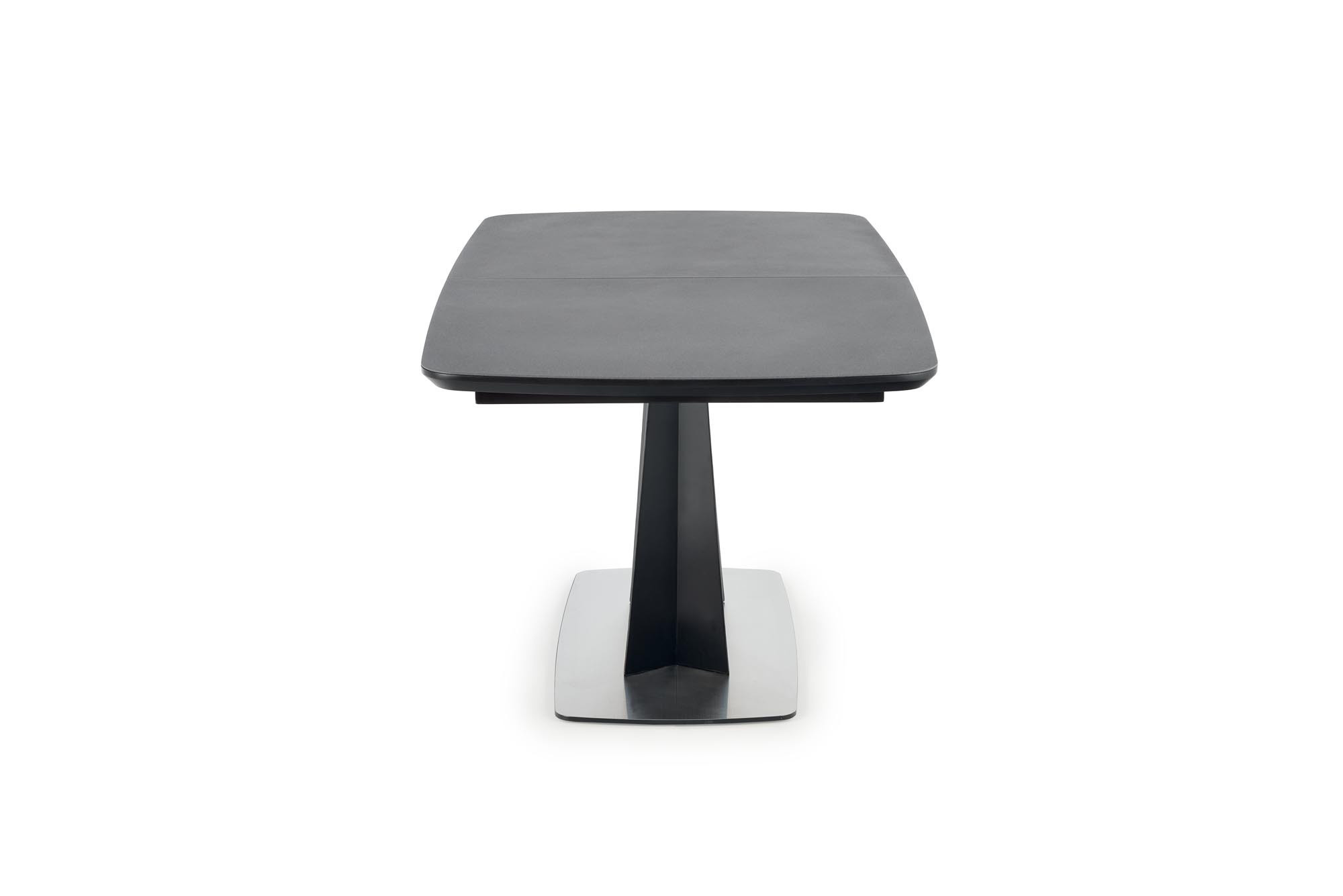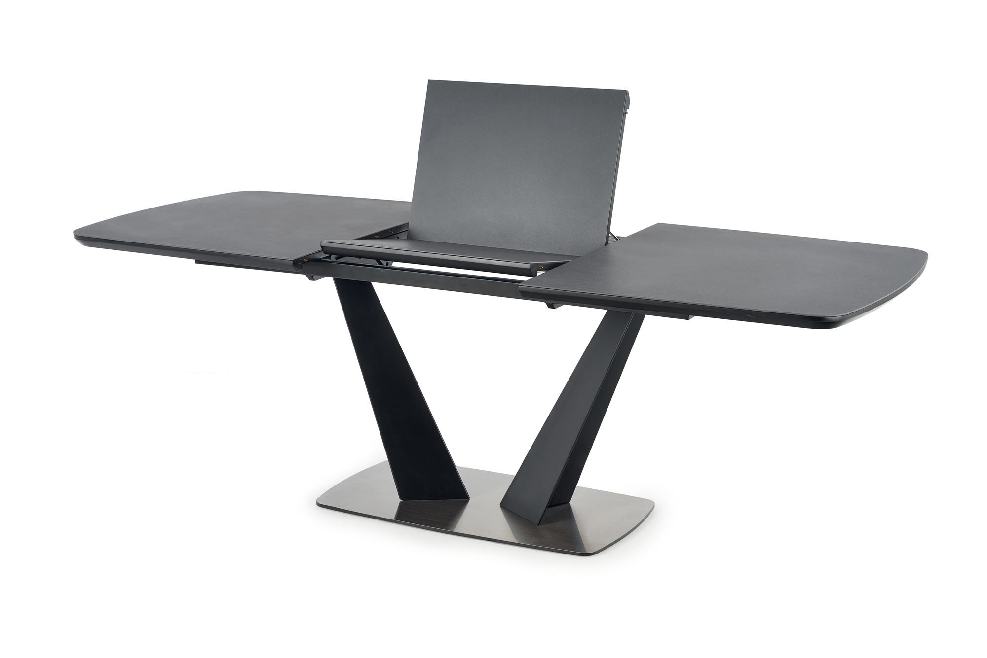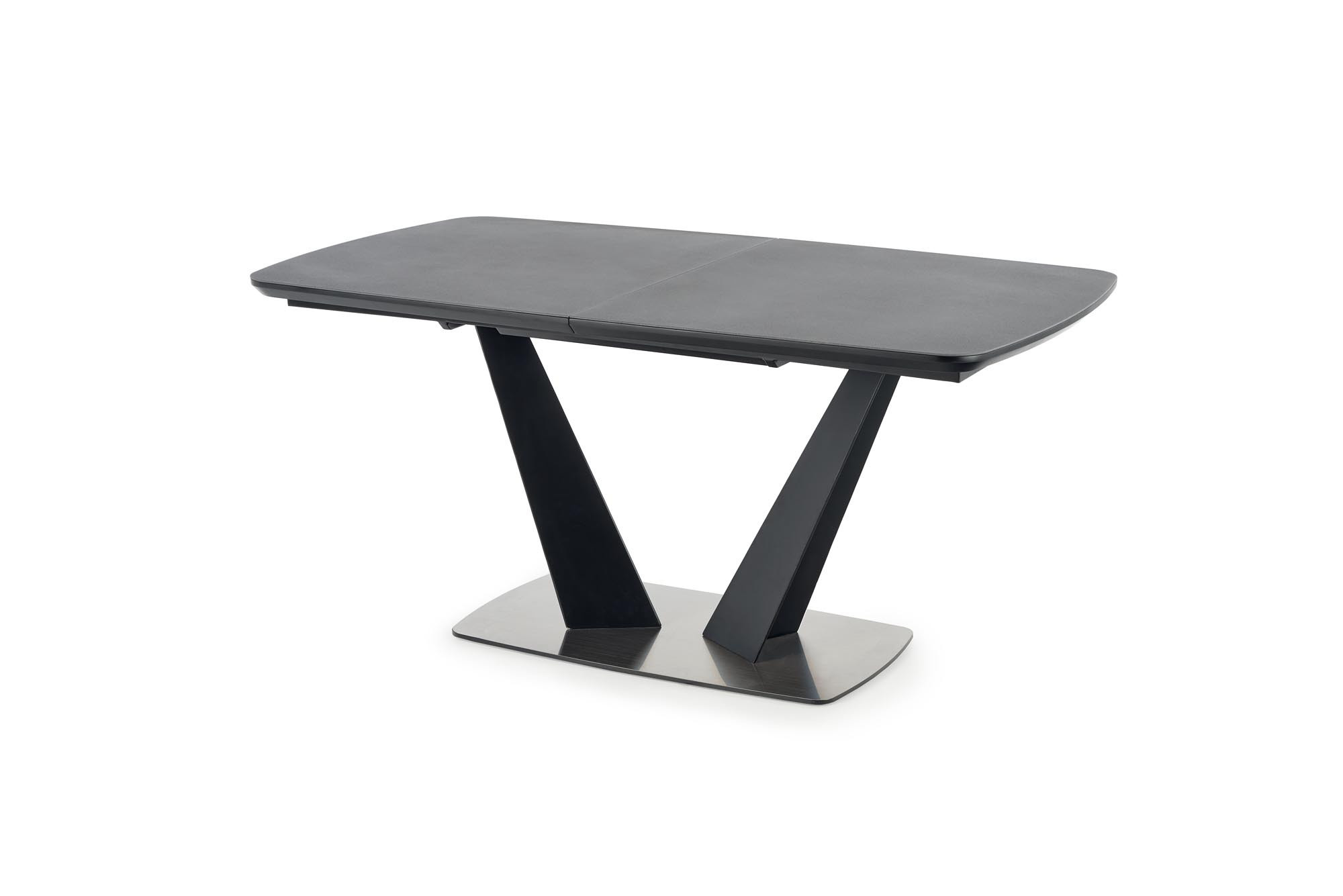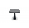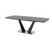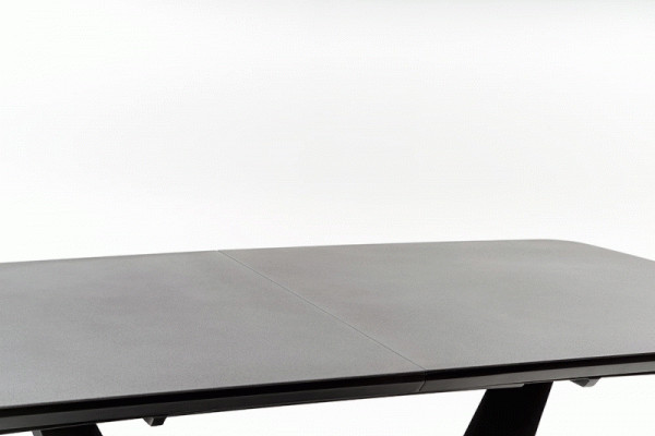 kihúzható asztal, méretek: 160-220/90/76 cm, anyag: üveg / lakkozott MDF / porszórt acél / rozsdamentes acél, szín: asztallap - sötétszürke, lábak - fekete