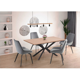 méretek: 160-200/90/76 cm, összecsukható asztal, anyag: MDF + természetes furnér / porszórt acél, szín: asztallap - természetes tölgy, láb - fekete