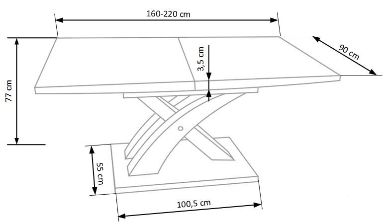 Alapállapotban az asztal méretei 160 cm hosszú, 90 cm széles és 77 cm magas, ami ideális a szokásos családi vacsorákhoz. Ha azonban több vendéget vár, az asztalt könnyedén kinyithatja tiszteletreméltó 220 cm-re, ami elegendő helyet biztosít minden szerettének.Gyakorlati felhasználás