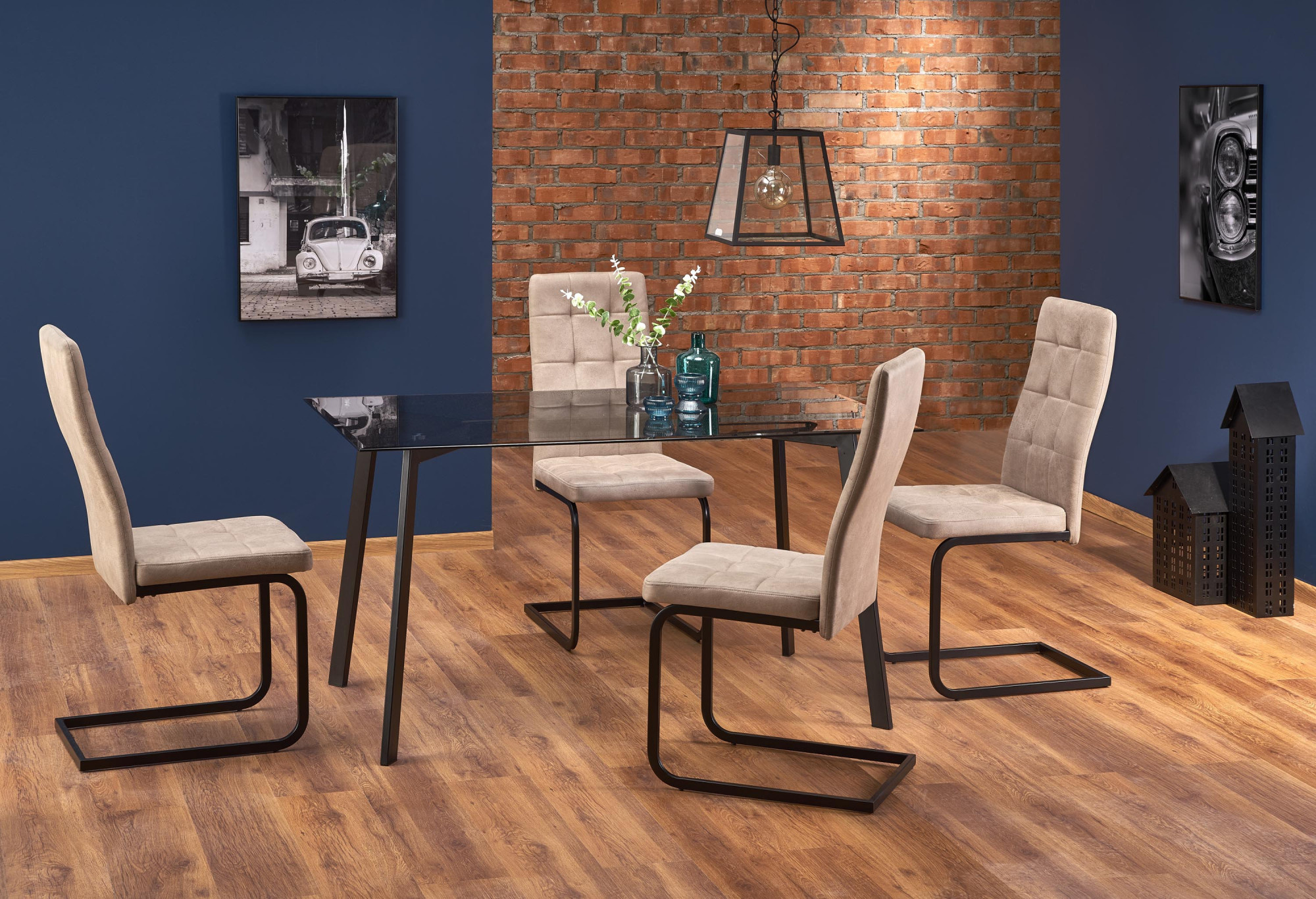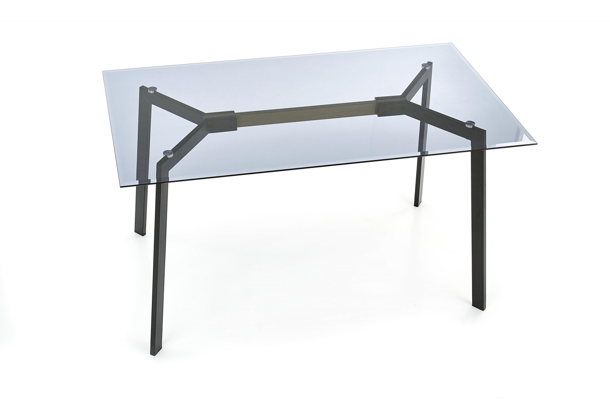 méretek: 140/80/75 cm, anyag: üveg / lakkozott acél, szín: asztallap - füstszínű, lábak - fekete