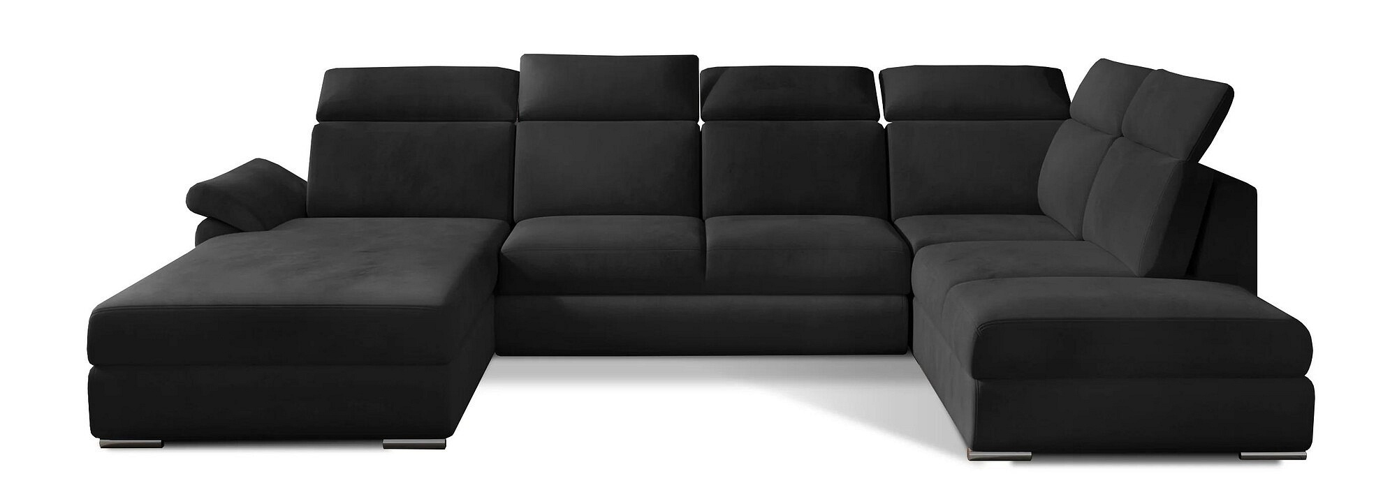 Evanell is a spacious, comfortable and stylish corner sofa that simply impresses - not only with its classic body, which complements the modern finish of the individual elements, but also with the maximum comfort that can be experienced on a sofa measuring 330 x 216 x 102 cm. The Evanell sofa bed will prove ideal as a piece of furniture for daytime relaxation, but can also serve as a place to sleep. The dolphin-type design allows you to quickly and effortlessly adjust the furniture to your current needs, providing a comfortable space for resting at night. The functionality of the furniture is also improved by a capacious storage compartment for bedding, which is located in the ottoman. The seat of the furniture is made of durable corrugated spring and elastic T30 foam, which guarantee exceptional comfort, maximum softness and resistance to indentation. Also worthy of additional distinction in our furniture are the high, contoured backrests, adjustable headrests, slanted armrest, upholstered back of the corner sofa, as well as the availability of the sofa in many color variants. Evanell is a piece of furniture that will meet all your expectations - from admiration of the aesthetic qualities, to maximum comfort of both sofa and bed.