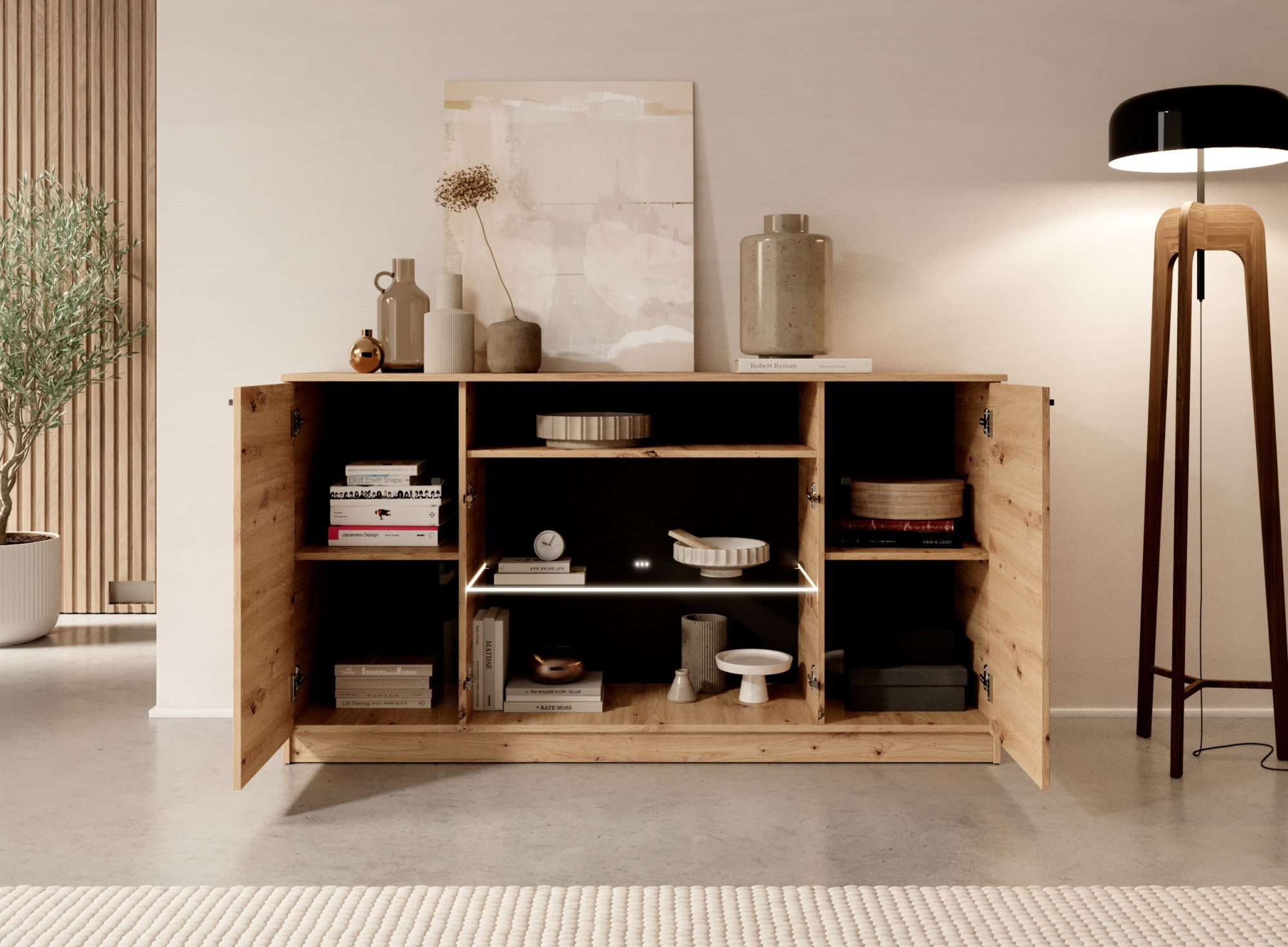 Az Evi I weboldal az elegancia és a funkcionalitás harmonikus összekapcsolása, amelyet azok számára hoztak létre, akik értékelik mind az esztétikát, mind a tér praktikus kihasználását. Artisan színe finom, de kifinomult hangsúlyt ad minden belső térnek, kiemelve annak jellegét.A weboldal egyszerű formája biztosítja, hogy sokféle elrendezéshez illeszkedjen, legyen az modern vagy klasszikus. A precízen kivitelezésű üvegezés könnyedséget kölcsönöz és megnyitja a teret, lehetővé téve annak tartalmának elegáns és bájos bemutatását. LED világítás készletben.