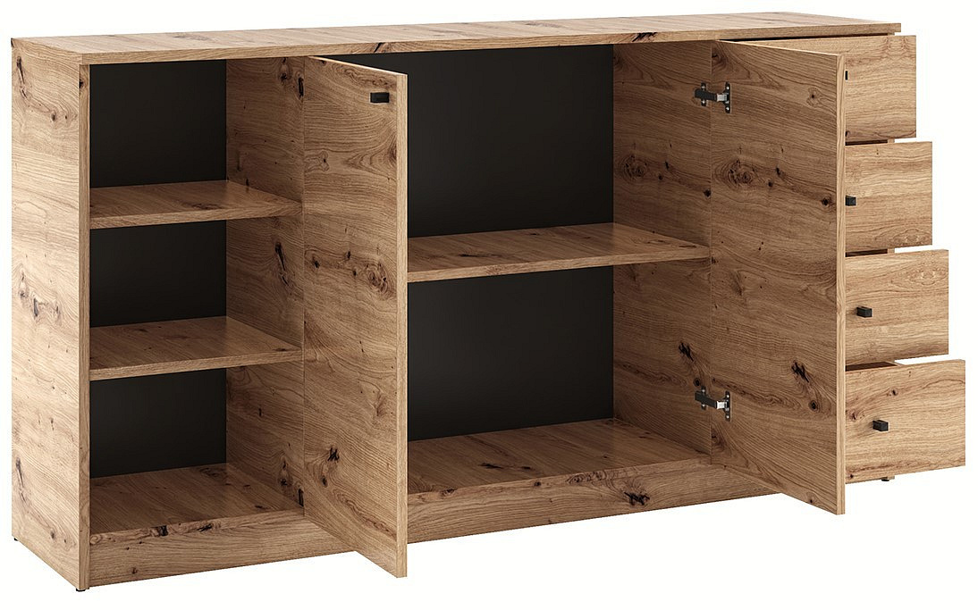 Az Evi II egy kivételes komód, amelynek fő előnye az artisan szín, amely eleganciát és karaktert kölcsönöz neki. Egyszerű formája biztosítja, hogy tökéletesen illeszkedjen a különböző belső terekbe, finom eleganciát kölcsönözve nekik. A komód belsejét a tér praktikus kihasználásának figyelembevételével tervezték. A polcok lehetővé teszik az apróságok vagy dísztárgyak rendezett elhelyezését, míg a fiókok remek helyet biztosítanak azoknak a dolgoknak, amelyeket nem szeretnénk szem előtt tartani, de könnyen hozzáférhetővé szeretnénk tenni.