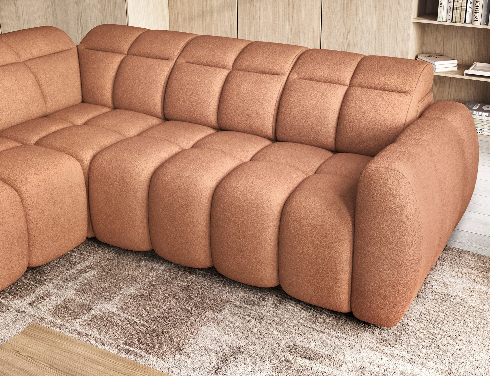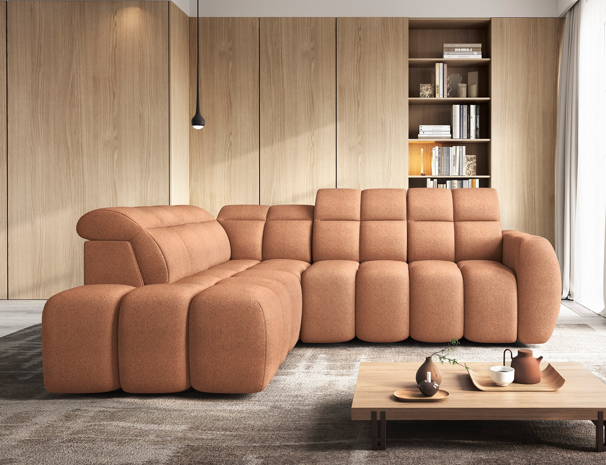 The Falconn Corner Sofa is an elegant and modern L-shaped piece of furniture that combines stylish design with exceptional comfort. Thanks to its electrically extendable seat, it allows for flexible space adjustment to meet individual needs. Additionally, the built-in storage compartment provides a practical space for bedding.High comfort is ensured by adjustable headrests and carefully selected filling materials. The seat consists of B-type wave springs and HR3030 polyurethane foam, guaranteeing flexibility and durability. The backrest is made of elastic straps and T2315 polyurethane foam, ensuring excellent lumbar support.The fully upholstered back allows the sofa to look great from any angle, making it suitable for various interior arrangements. Black plastic legs add a touch of modernity to the overall design.The Falconn Corner Sofa is a perfect choice for those who appreciate functionality, contemporary design, and supreme relaxation comfort.