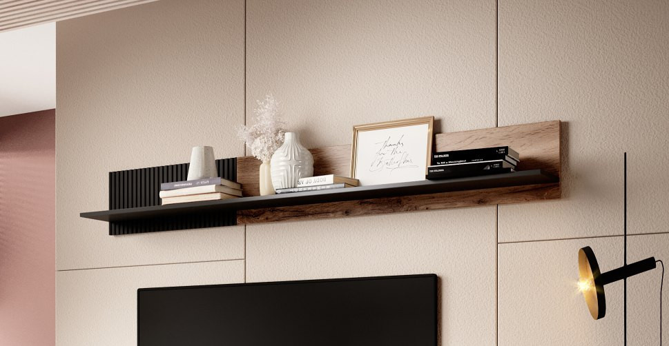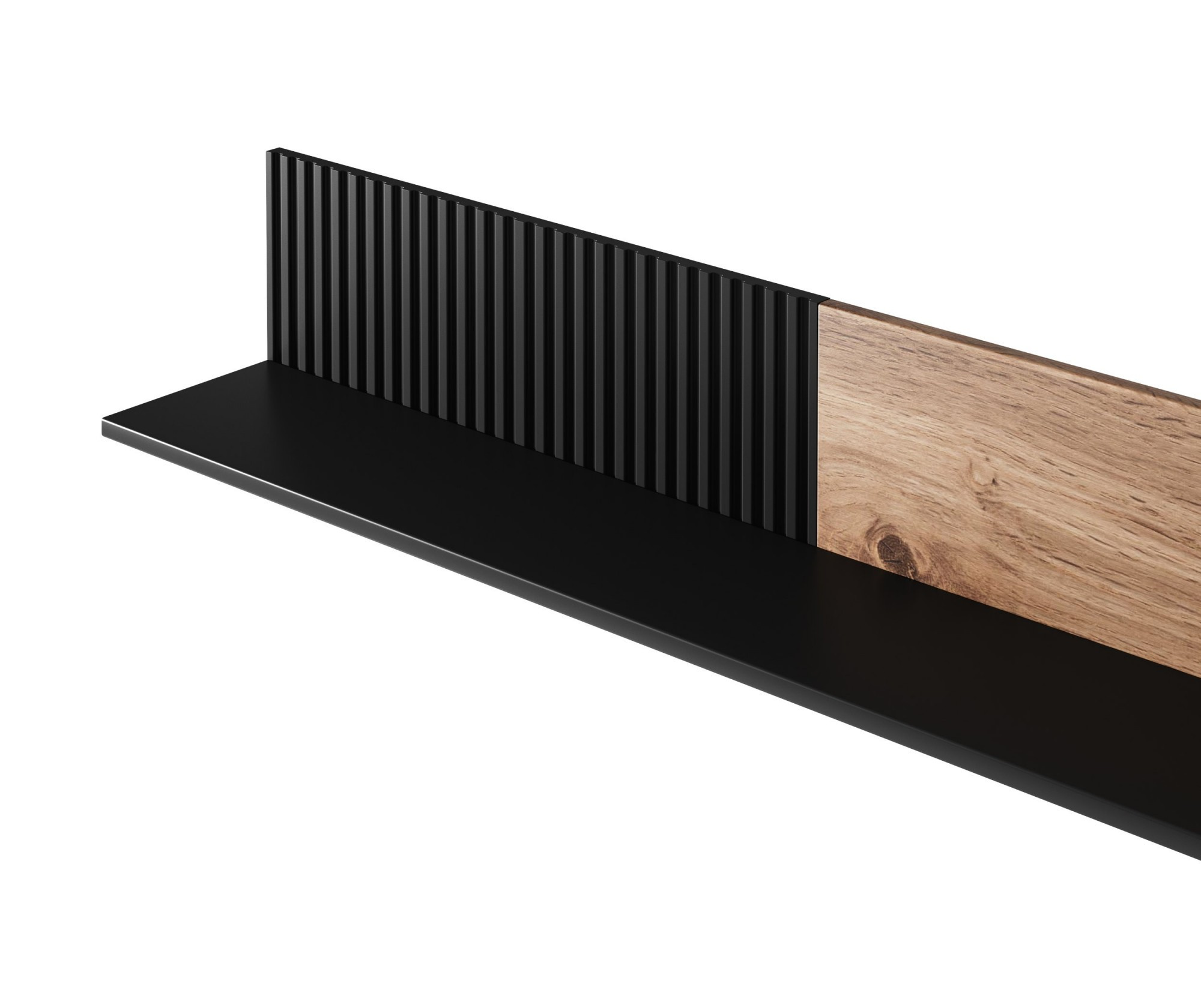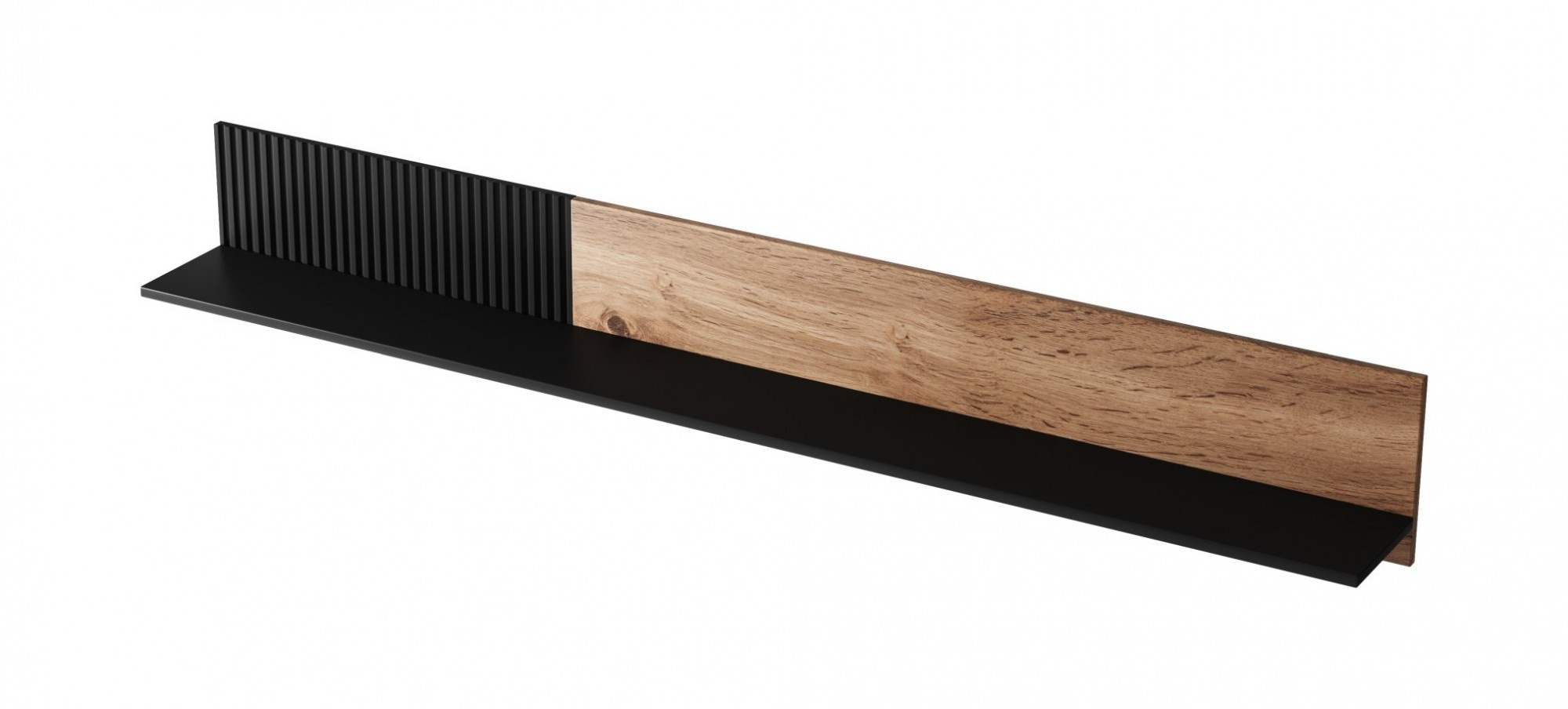 fali polc, méretek: 180/20/25 cm, anyag: furnérozott MDF / furnérozott bútorlap / polipropilén, szín: wotan tölgy - fekete