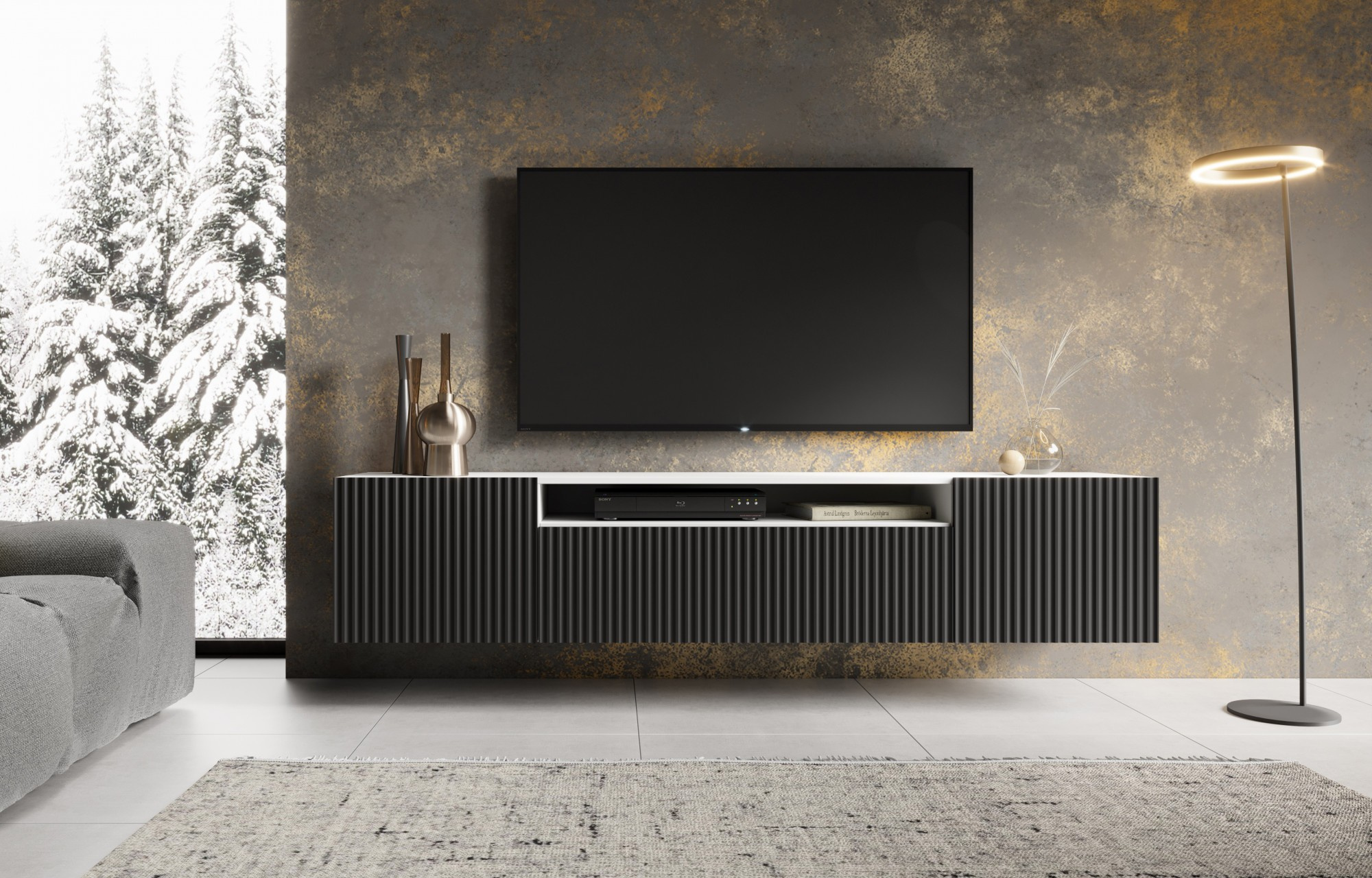 A Noemi RTV egy modern, elegáns és funkcionális televíziós szekrény, amely ideális a modern belső terekben való használatra. Egyedi tulajdonsága a bordázott kivitel, amely karaktert és textúrát kölcsönöz a bútornak. A szekrény úgy lett tervezve, hogy megfelelő rekeszeket és polcokat tartalmazzon különféle elektronikus berendezések tárolására, beleértve a televíziót, a set-top boxot, a játékkonzolt és sok más eszközt.