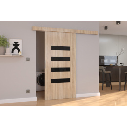 Falra szerelhető tolóajtó FORLI 76 Sonoma+Fekete Lacobel